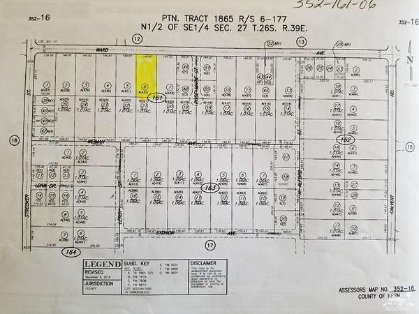 Est $205/moRidgecrest, Ca. Over an Acre of Land (45,968sf M/L). for Sale. W Ward Avenue. Unimproved Residential property is Located Between Strecker St & Calvert Rd, Just West of Rosemarie Ct Culdesac, E of North Leroys. Land is approx. 375 feet (To center of Subject Property). Build your dream property. Close to City of Ridgecrest and close access to Hwy Rte 178. Close to homes. APN 352-161-06 Zoned Residential T zone. Located on the South side of W Ward just 6 parcels East of Strecker St. Latitude 35.644062 Longitude -117.764735.