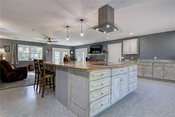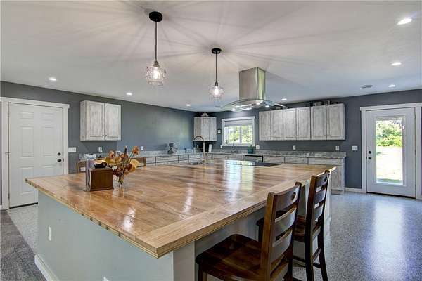 PRESENTING A UNIQUE & RARE WATERFRONT PRIVATE OASIS that truly represents an Ultimate Turn-Key Paradise! This sprawling, newly constructed Ranch style home is situated on the Peninsula of Trow Lake, offering breathtaking panoramic views & boasts an EXCLUSIVE PRIVATE ISLAND, complete w/ established pathways, steps away from the SANDY BEACH AREA & private dock. Trow Lake has excellent fishing & calm waters, perfect for paddle boating & kayaking, w/ the shoreline spanning all three sides of property, you are guaranteed a truly spectacular waterfront experience. The interior of the home is designed for comfort & entertainment, featuring a massive kitchen & living area w/doors leading to a versatile 38-foot room, equipped w/ 2 garage doors, that can effortlessly transform into a sunroom, playroom, or seasonal storage for outdoor gear. Modern conveniences enhance the living experience; durable PolyTek Epoxy flooring, Life Breath air exchanger, stunning custom island as a focal point, & huge walk-in kitchen pantry. A thoughtfully designed tremendous guest bathroom that incorporates a dedicated laundry area & built-in organization & a luxurious Primary Bedroom en-suite, featuring a soaking tub strategically placed to overlook the waterfront, & gorgeous wood-style ceramic tiled walk-in shower w/ a sitting bench. The attached, heated 3 car garage offers a battery-operated car charge capability & there is an expansive 40 ft back concrete patio & firepit area, perfect for outdoor relaxation & gatherings. This remarkable location provides unmatched privacy & is genuinely ONE OF A KIND. The private island offers an incredible opportunity for camping excursions & fishing retreats, all while the comforts of your home are just steps away! No description or picture can truly capture the full allure of this NW WI DREAM WATERFRONT OASIS. I highly recommend calling to schedule a private tour to fully appreciate the exceptional features & lifestyle this extraordinary property offers.