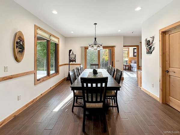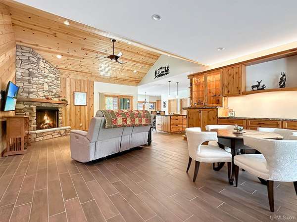 Secluded Cedar River Retreat - Carney, Michigan Experience the perfect combination of craftsmanship, comfort, and natural beauty with this remarkable 35-acre riverfront estate. Offering approximately 1,800 feet of pristine Cedar River frontage, this property provides tranquility, stunning views, and a true connection to the outdoors. This 3-bedroom, 2.5-bath home features top-of-the-line construction and thoughtful design throughout. The expansive open-concept main living area boasts a beautiful fireplace, heated floors, and 36-inch doors for easy accessibility. A large master ensuite occupies one end of the home, providing privacy from the two additional bedrooms located on the opposite end. The home is fully furnished and move-in ready, showcasing meticulous care and attention to every detail. A two-car attached garage, with one bay currently set up as a workshop, complements the property, along with two immaculate pole buildings offering abundant storage or hobby space. Step outside to enjoy over 1,300 square feet of poured patio, ideal for entertaining or simply relaxing while taking in peaceful views of the Cedar River. For guests or additional accommodations, the property includes three RV hookups, each with power and water access. Set well back from the road, this home offers exceptional privacy while remaining conveniently close to local amenities and recreation opportunities. Every inch of this property reflects quality, care, and pride of ownership. Whether you're looking for a permanent residence, seasonal retreat, or riverfront getaway, this turnkey estate delivers comfort, beauty, and seclusion in the heart of Michigan's Upper Peninsula.