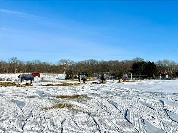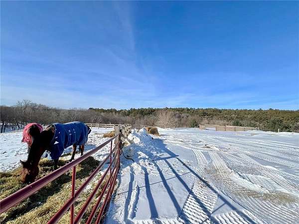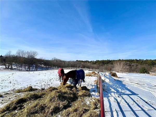 Beautiful 12.191 acre property located in desirable Oak Grove Township, an area of forested ridges and rolling hills in the picturesque Driftless region of western Wisconsin. This property is currently being used for horses but can be a stunning new home site with panoramic views of the surrounding area. Enjoy country living and acreage with the convenience of paved roads in a neighborhood of upscale homes. The property includes a 100x42 pole shed with 12 horse stalls, insulated and heated tack room, paver barn flooring, hookups for washer and dryer, plumbing for future bathroom, running water, electricity, propane gas and internet. There is an industrial sized well with 3 below ground, freeze free watering stations for horses, multiple pastures with electrical fencing and gates, and a round pen with wooden fencing. A future septic system can be installed by new owner. Stop by and see this absolute dream of a property!