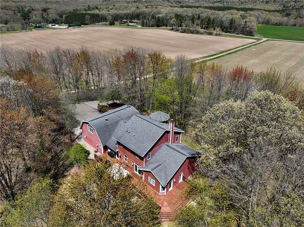 Stunning custom home blending country charm with modern comfort. The inviting red barn-style exterior opens to warm, elegant interiorsfeaturing a grand stone fireplace. Entertain with ease in the impressive Tuscan inspired lower level complete with a full bar, fully furnished game room, andwine cellar. The main level offers a beautiful kitchen, cozy coffee nook, and walkout to a spacious deck with covered gazebo overlooking peaceful woodedviews. The primary suite, also on the mail level, includes a spa-inspired bath with dual sinks and glass-block shower. A separate suite is included above thegarage where your guests can enjoy privacy and comfort . A rare find offering style, craftsmanship, and serene privacy. More Acreage available., to besurveyed. Buyer/Agent confirm measurements