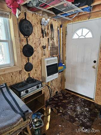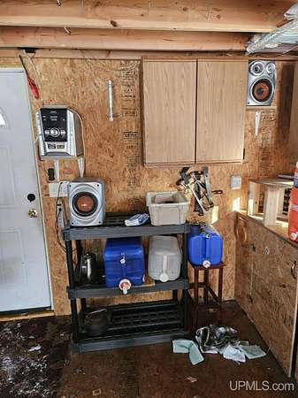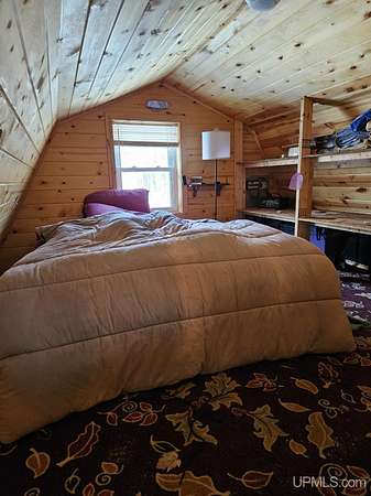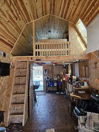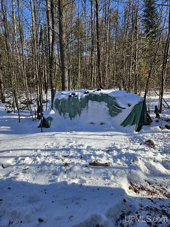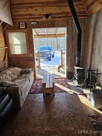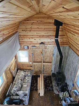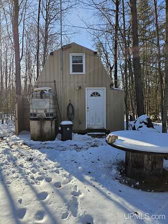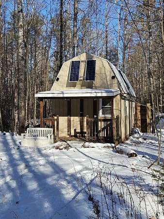 Your Northwoods adventure starts here! Nestled on 2.45 wooded acres, this charming off-grid cabin is the ideal home base for ATV riding, snowmobiling, and hunting. The cozy interior features a lofted sleeping area and a wood stove that keeps the space warm on even the coldest nights. Enjoy the independence of solar power along with a generator-ready hookup and converter for added convenience. The property includes a 275-gallon rainwater collection system with an outdoor shower, plus a well-appointed private outdoor privy. An extra-wide front door provides easy access for bringing in and storing your recreational machines and gear. If you're seeking peace, privacy, and endless outdoor recreation, this Northwoods hideaway is ready to become your perfect retreat.