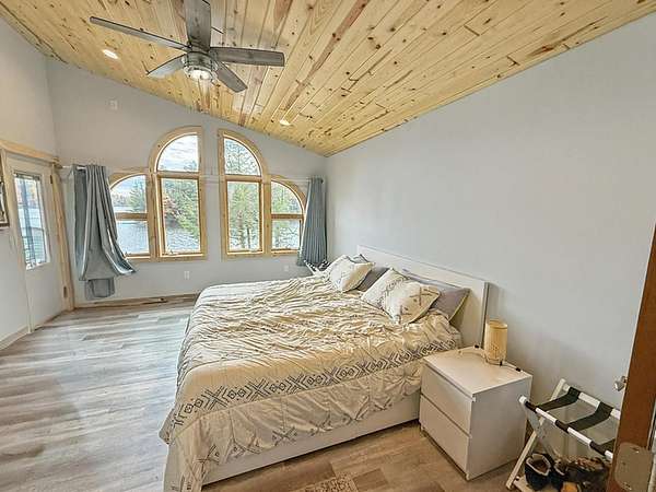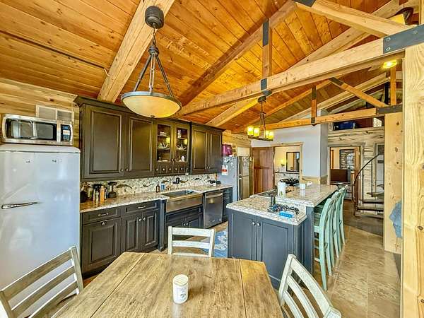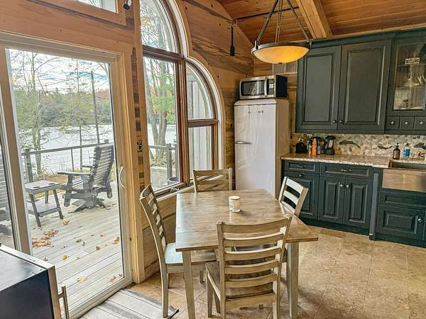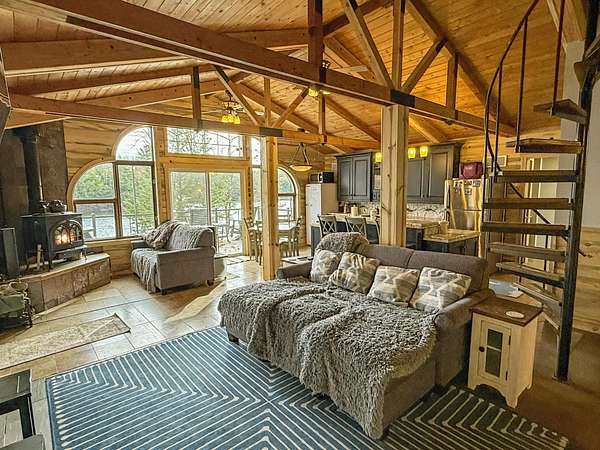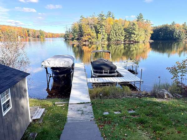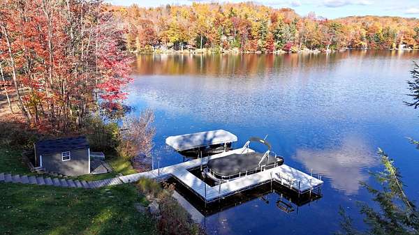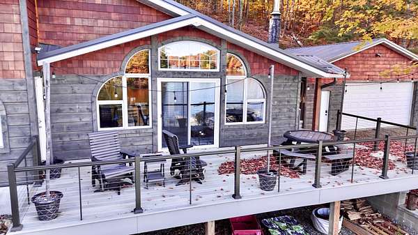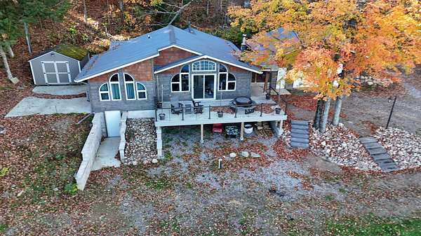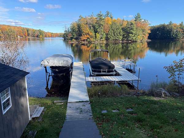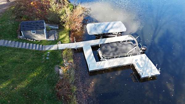 *DO NOT FOLLOW GPS TO GET HERE* Discover this cute and cozy 3-bedroom cabin nestled on 2 acres of mature hardwoods in the desirable Harrison Hills area known for its trail systems and rolling hardwoods. Enjoy clear, sandy frontage with stunning views of Seven Island Lake and additional vistas of Long Lake across Hwy B. Inside, you'll appreciate the custom tile bathroom, granite countertops, gas range with five burners, and custom cabinetry, dry bar, and laundry hookup. A small loft adds charm and extra storage space, while the partial basement offers forced-air heat and central A/C with a walkout to the lake. The property also features a 2-car heated garage, lakeside storage shed, a large maintenance-free lakeside deck, and an expansive dock system. Built for relaxation and lake living, this home combines comfort, quality, and beautiful waterfront views-ready for you to enjoy year-round on this full rec lake.