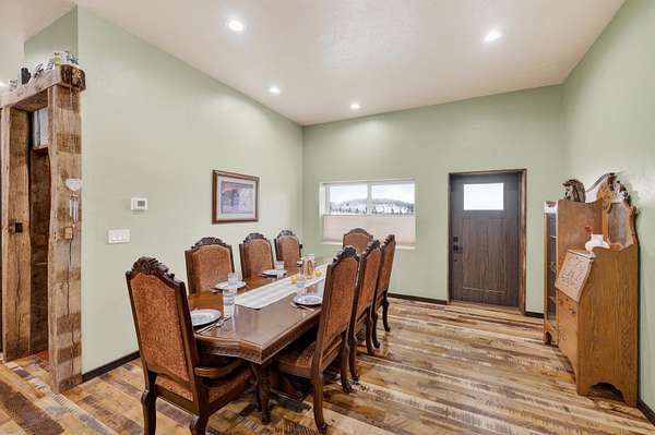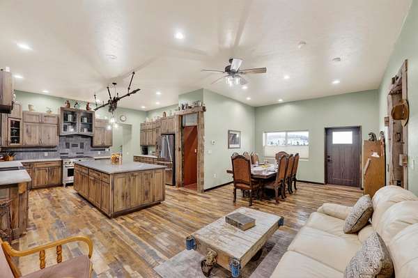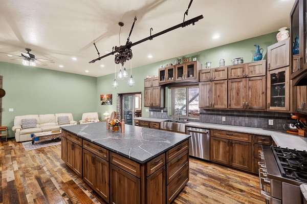 Unrivaled Security Meets Rustic Elegance on 17 acres. Experience the ultimate peace of mind in a home engineered for a lifetime. This custom-built estate features ICF construction from basement to roof and tempered glass windows, offering a level of disaster resistance rarely found in luxury living. Inside, 10' ceilings soar over handcrafted Amish cabinetry, granite, and concrete countertops, epoxy bathroom finishes, reclaimed wood beams & floors, and a massive lower level featuring an office, gym, nursery, 2nd living room and a game room with a walkout to the yard and chicken coop. Beyond the aesthetics lies a hidden santuary - a concealed escape room plumbed for a 4th bath. Whether you're hosting in the expansive covered porch with its custom wet bar; or prepping a feast in the detached shed's 2nd kitchen, or creating something new in the workshop, this estate is a dream come true.