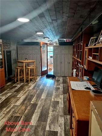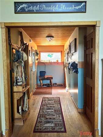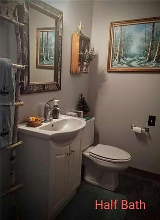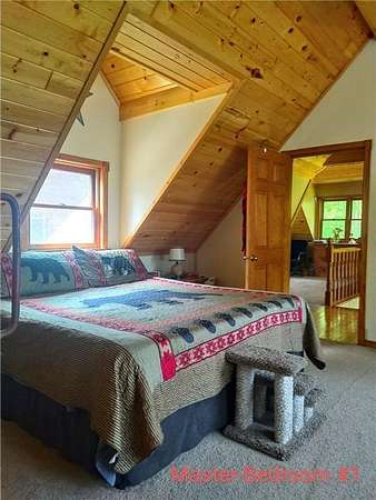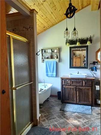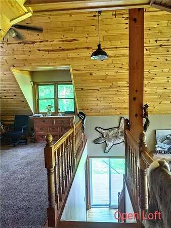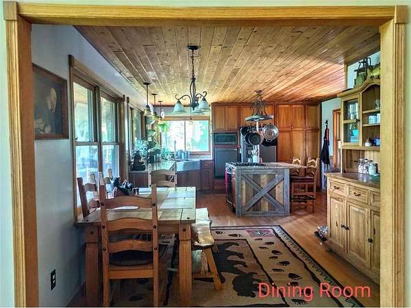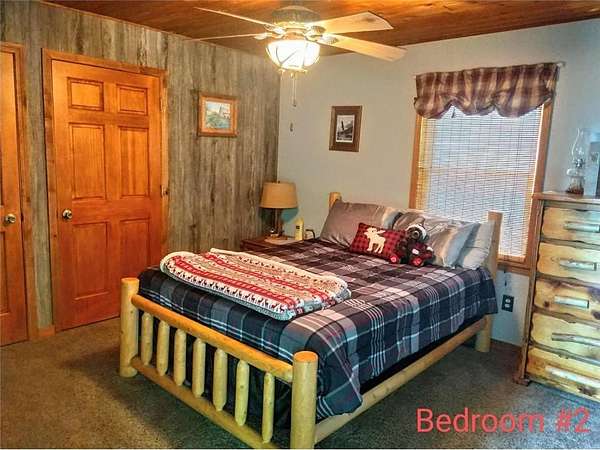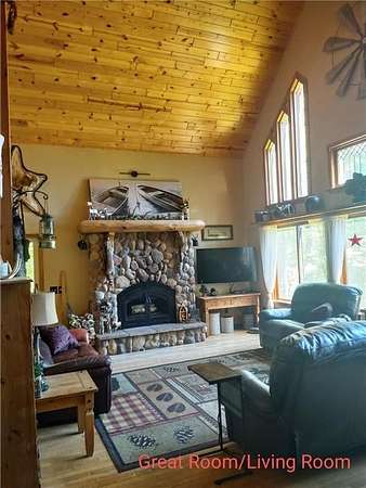 Enjoy hunting, fishing, swimming, trail riding and snowmobiling right outside your front door. Property has 21 wooded acres with 6-acre spring-fed lake, 20 ft deep clear water and lots of fish. Property butts up to county land with a variety of wildlife and connects right to the Tuscobia State Trails. Home has wraparound porch, deck and steel roof. A 2-story great room, fieldstone fireplace and open loft. Kitchen has stone counters, barnwood island, and 5-burner stove with downdraft system. The LL family room could be 5th BR and has walkout. Property includes a 25x36, 3-stall, 2-story detached garage with LP siding, and steel roof. 2nd story of garage has finished Rec Rm with tin ceiling, pool table, gas fireplace, furnace and A/C. Also a 24x36 detached garage has 2 stalls, barn-style steel roof and finished 2nd story Man Cave with tin walls, cedar ceiling, furnace and A/C. Two addl. sheds on property 8x12 and 12x16. Furnishing negotiable Only 2-1/2 hours from the Twin Cities.