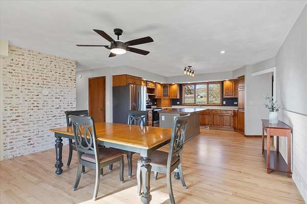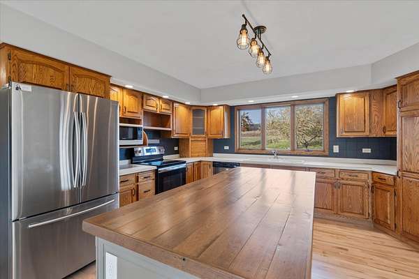Spacious ranch nestled on 3 scenic acres in the Town of Grant, just outside Marion! Offering 2,234 sqft above grade plus a walk-out LL with 1,448 sq ft, this property shines inside & out. Main floor features 4 bedrooms, 2.5 baths, laundry/mudroom, kitchen/dinette with island, appliances & patio doors to your expansive deck. The primary suite offers a walk-in closet & full bath. Many updates including a new roof, floor coverings & paint throughout. LL features a (15x12) 2nd kitchen, theater room, family & rec room, full bath & 5th bedroom. Enjoy valley views, fruit trees, lilacs, huge deck, 2.5-car attached & heated detached garage. This one has it all - space, updates, and a stunning country setting. Showings begin 11/15/2025. 48hrs for acceptance.