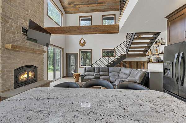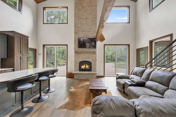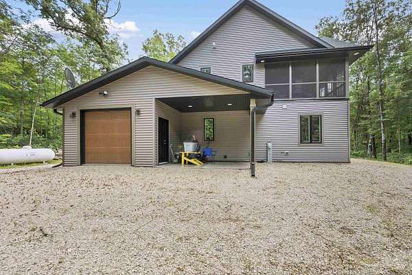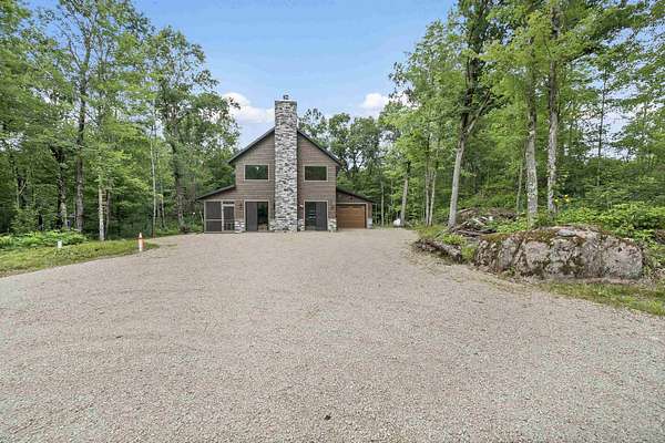 Tucked away on 4.46 private acres in Crivitz, this two-story home is a perfect up north retreat with tons of character and high end finishes! Enjoy outdoor living with two screened-in porches, just minutes from boat landings and snowmobile trails. Open concept kitchen with center island flows into the living room with wood-burning fireplace offer a cozy gathering space. Main level features 2 bedrooms, full bath with jetted tub, and laundry room has dog washing station. Upstairs you'll find an open loft, spacious primary bedroom with full bath, and private porch. Tandem drive-through garage and full basement provide ample storage. Peace, privacy, and year-round adventure await! Road HOA is $100/year