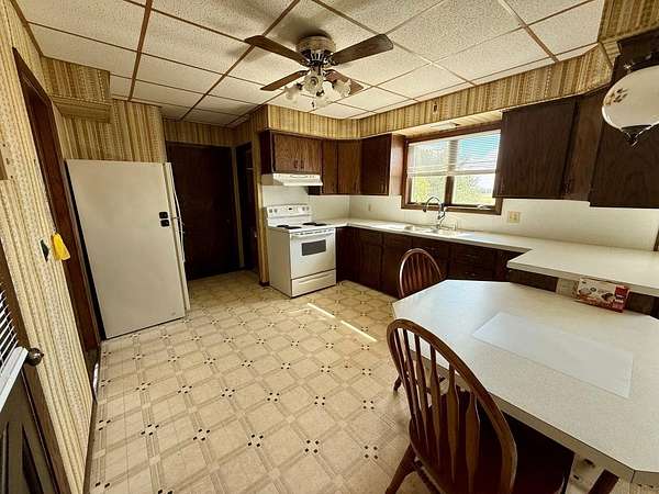 This charming 2-story country home offers approx. 2,682 sq ft of living space! On the main floor, you'll find the kitchen, formal dining room, living room, bedroom, full bath, and there is an 11x12 entry area and a 7x28 enclosed porch. Upstairs, there are three bedrooms and a family room. Spacious is the best word to describe this home! Many updated windows brighten the home. The attached garage has a new roof, and there is a 36x100 barn, 23x67 pole shed, smaller sheds, and two silos. Enjoy the peaceful country setting on approx 2 acres. Sold as is.