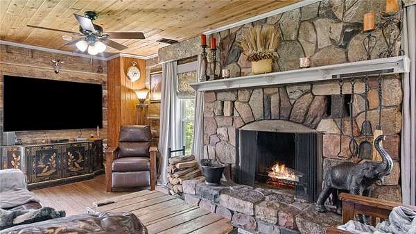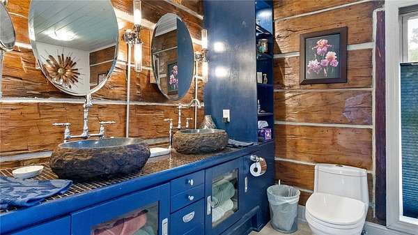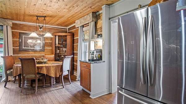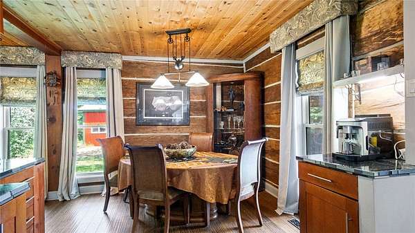 Located in the north woods of Rusk County, is this serene setting on a 4.84 acre parcel along with an improved log home. Features include durable 3/4" hand scraped bamboo flooring in kitchen, dining and living room, updated countertops, gorgeous stone wood burning fireplace. Bedrooms all on upper level with laundry and designer bathroom with actual lava sinks. Outside is a large lawn and ag land, an old barn and a newer 28' x 30' garage. Preinspected by Ideal Home Inspections and H&H Plumbing AND Sellers are including a 12 month AHS ShieldPlus Home Warranty!