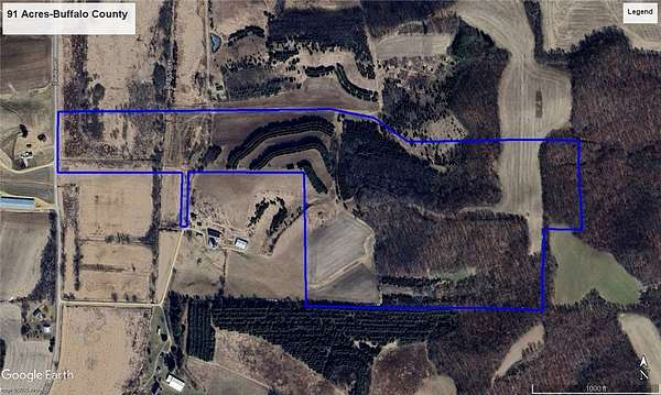 120 Acres w/pole shed & cabin located on a dead end road in world renowned Buffalo County. Property sets up incredibly well as a hunting property that will provide memories for generations to come. Rolling bluffs create a landscape that you have to see to appreciate. With an extensive trail system throughout, this property has excellent access to the entire farm. This is one of the most diverse properties to hit the market in years due to its combination of hardwood ridges, thermal cover plantings, tillable ground, and grassland that is incredible pheasant habitat. A spring fed pond, Bear Creek, and numerous water holes provide water for wildlife to thrive. The secluded food plot locations coupled with the incredible habitat this property provides creates the perfect make up for an outstanding hunting property. This property comes with a 2 bedroom 2 bathroom cabin know as "The Deer Palace" that is perfect for hosting deer camp, and has plenty of storage for storing toys and equipment.