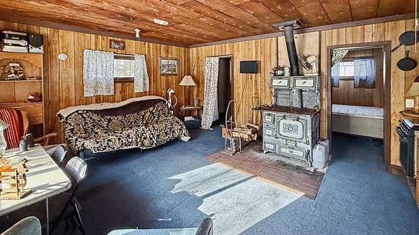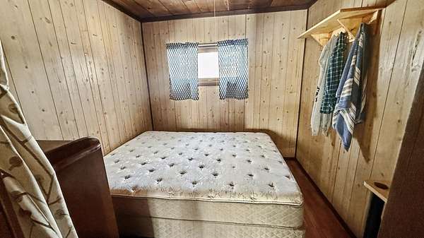 24 x18 cabin with 2 bedrooms and 1/2 bathroom with chemical toilet and shower. Wood stove with dura pipe chimney. A nice outhouse and 6x6 storage shed. 105 gallon water catchment system. Solar electric system or generator that powers lights, shower pump and TV all on 2 acres of mature hardwoods in the middle of Harrison Hills with 1000's of acres of Lincoln County Forest that connects to back of property. Excellent hunting right out the front door. WPS electric is available on road. Everything in pictures- furniture and all beds and bedding and TV included. No electric bills, good TV reception from Wausau and Rhinelander stations, Excellent deer, bear,turkey and grouse hunting right out the front door. You are right on snowmobile and ATV trails. From the back of property you have 1000's acres of Lincoln County Forest to explore and many lakes in the area.