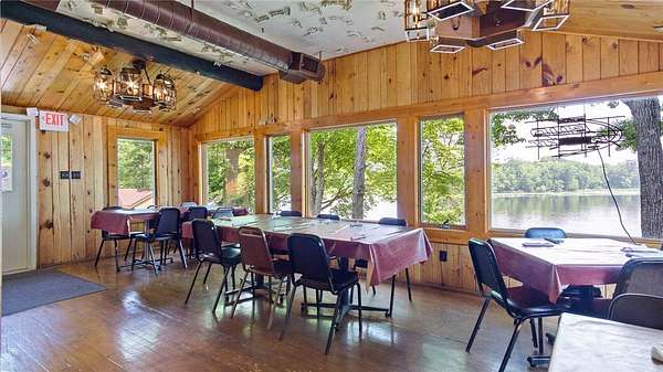 Northwoods Resort located in the heart of the Blue Diamond Vacation area in Rusk County, Wi. This well established restaurant, bar and cabin rental business sits on the shores of the Island Chain of Lakes. It is a destination point that caters to customers who seek lake recreation, UTV adventures, snowmobile trails, hunting and nature enthusiasts. Friday fish fry and old fashions top the full kitchen menu for a dining area that seats 55. The wrap around bar accommodates televised sporting events and owner sponsored entertainment on a regular basis. The property owns 318 feet of water frontage spread across 1.89 acres, giving easy access to the business and 3 cabin rentals with a large customer parking lot capacity of 50 cars and 18 boat dock slips. With some vision, this property investment can provide an opportunity as a successful commercial restaurant, private retreat or vacation rental. Conveniently located 1 hour from Eau Claire & less than 2 hours from Minneapolis, MN