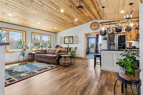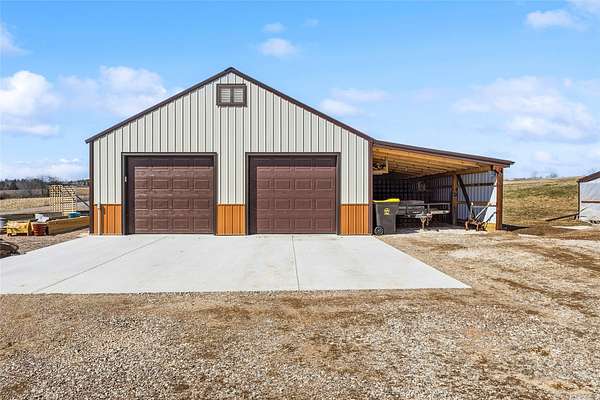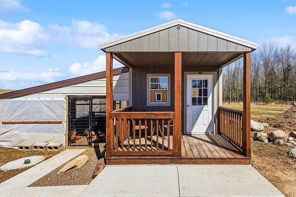 Tucked away on 10 acres, this 2024-built retreat delivers modern comfort with a refined homestead feel. Designed to live larger than expected, the home features soaring cathedral ceilings and an open, airy layout that enhances both space and flow. The kitchen stands out with quartz countertops, custom hickory cabinetry, and top-of-the-line newer appliances. The primary bath features a deep soaker jet tub, creating a spa-like atmosphere. Aerodynamic ceiling fans add both efficiency and a clean, modern touch throughout. A heated 2-car attached garage pairs with a 40x40 detached shop perfect for toys, storage and more! Additional structures include an 8x16 greenhouse, 10x24 chicken coop, 8x12 garden shed, and 4x8 deer stand, creating a well-rounded setup for various uses. A concrete pad with 220V is already in place for a future hot tub. Electric, water, and septic systems are established and ready to support future expansion, making this property move in ready!