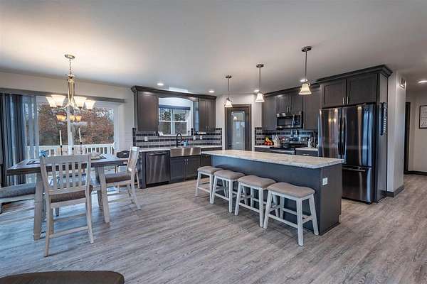 A Black Friday Special! Get the best of both worlds, where this 2020 newer construction 5 bedroom 2 bathroom home meets country land! Sitting on just under 6 total acres, This house is nicely finished for long lasting peace of mind and low maintenance. Upon entry of this bi-level build, you are greeted by tall ceilings, a nook for keeping coats and shoes, and easy access to main, lower level and the 2 car insulated garage. The main level features a spacious open concept with lots of windows granting the great views surrounding the home and plenty of natural light. In the kitchen you will find the included stainless appliances, an island+breakfast bar, walk in pantry with built-in shelving and lazy susan, dark finish cabinets with crown moulding, and tile backsplash. The living room offers plenty of space and the main area also features room for dining and a sliding patio door out to the covered back deck. Down the hallway brings you to the 3 main bedrooms and first full bath. The master en-suite is a few more stairs granting privacy and separation from the rest of the home, and features a generous walk-in closet and full bathroom with a dual tub and walk in shower with a rain head fixture. The lower level has been finished to add 2 more bedrooms and an additional family room, with the opportunity to add a 3rd full bathroom. The lower level also has a utility/laundry room with a daylight window, owned water filtration/softening system, and 200 amp service. Outside, there is a leased LP tank and two additional poured concrete pads with endless opportunities. The near 6 acres also allows for possible buildings. Do not miss your chance to get the best of both country living and new construction amenities! The adjacent 2 acre lot with barn and silos (Parcel # 032023400020) is not included in the price, but sellers would also consider selling for the right offer.