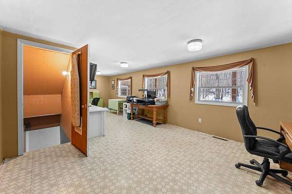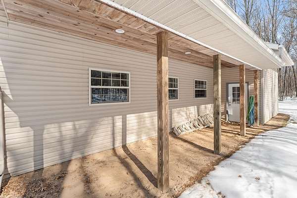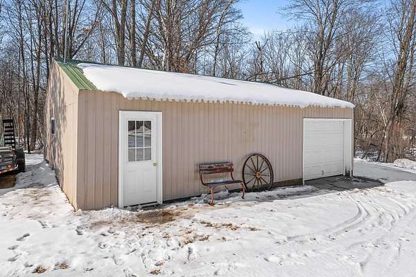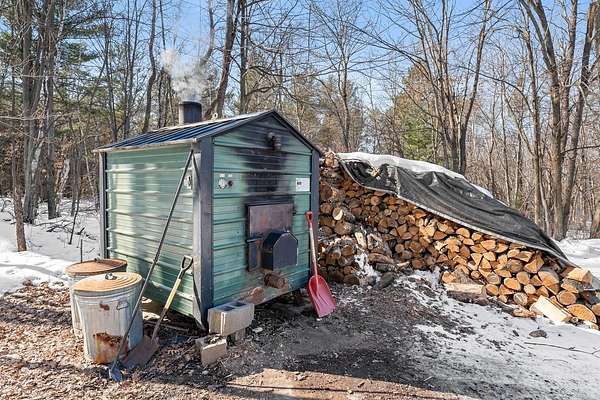 Escape to your own private oasis with this beautifully maintained 4-BDR, 3-BA pre-inspected home tucked well back from the road for exceptional peace and privacy. Set on 40 scenic acres, this property is perfect for buyers seeking space, nature, and room to breathe. Inside, you'll find a spacious primary suite featuring a relaxing jacuzzi tub, walk-in shower, and generous closet space. The oversized attached heated garage offers abundant room for vehicles, hobbies, and storage, while the private office just off the garage is ideal for remote work or a quiet workspace. The basement features a built-in gun safe and space to entertain guests. Outbuildings include a 24x36 pole shed and a charming 9x16 playhouse. Outdoors, enjoy established wild blueberries, apple trees, frequent wildlife sightings, and a natural spring. Located near snowmobile trails and owned by just one owner, this move-in-ready country property blends comfort and rural charm.