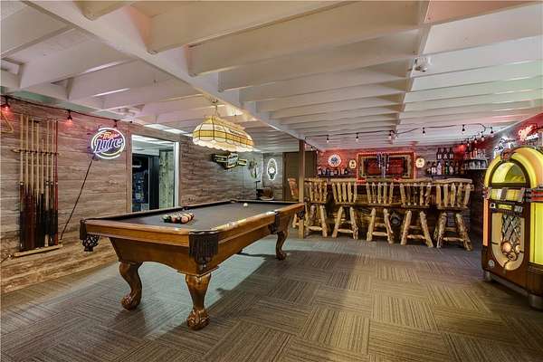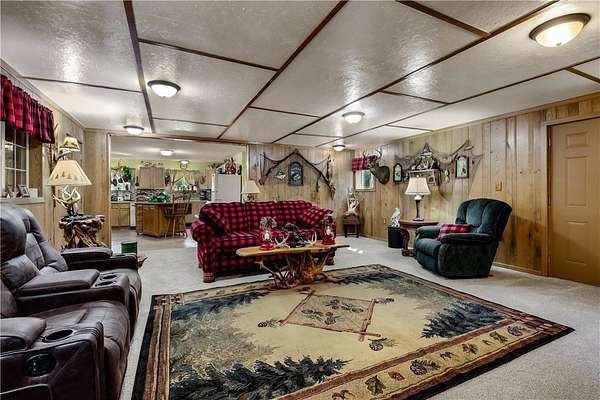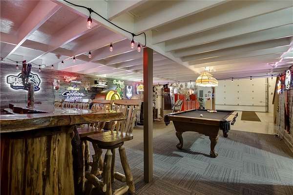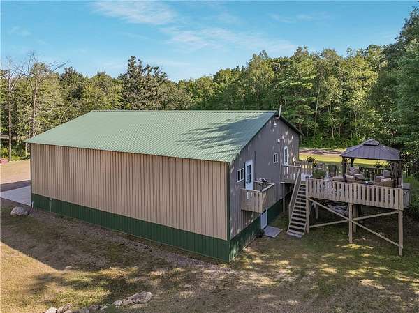Escape to your own private retreat on 40 wooded acres with this stunning barndominium blending modern comfort and rustic charm. The main living area offers 2 bedrooms, a spacious living room, and a second-floor deck with breathtaking views of the hardwoods. The fully finished garage level features a 14' tall garage door, 2 bonus rooms behind a sliding barn door, and a custom bar with signage, lighting, and a real jukebox - perfect for entertaining or hobbies. Outbuildings include a 48*30 Quonset for storage or projects and a 13*11 insulated powered shed adding even more functionality. Outdoors, enjoy trails winding through hardwood forests, mature maples for syruping, and a pond, wetland, and food plot along the east border. Excellent hunting opportunities add to the lifestyle appeal. Nearly the entire property has been updated within the last four years, making it move-in ready and adventure-ready. This one-of-a-kind property delivers privacy, versatility, and the ultimate lifestyle.