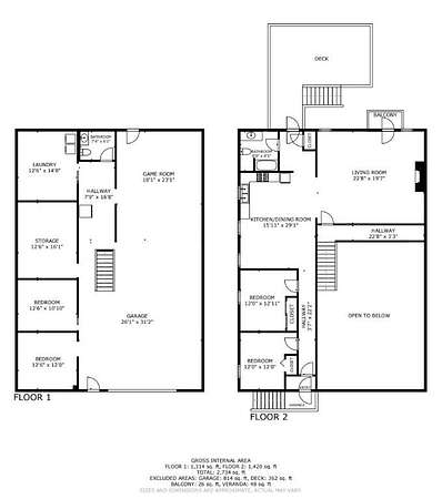 - Bathroom x 2, Bedroom x 2, Bonus Room, Game Room, Laundry Room