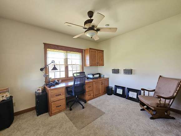 True quality and craftsmanship greet you at the front porch of this 4 bdrm 3 1/2 bath home on almost 5 acres built by Kyle Uhlig. Pristine hardwood floors. solid 6 panel oak doors compliment the first floor layout with full bath and bedroom (currently used as office), oversized living room, kitchen with custom cabinetry, center island and new stainless steel appliances. Plenty of room for family and friends to gather in this gracious dining room and laundry room complete the first floor! Follow the oak staircase...loft seating area, primary bedroom has full bath and an amazing closet. Full bath and 2 additional bedrooms finish this story! Then let's talk about the garage...this 1120 square feet plenty of room for cars, trucks and toys. Garage entry to basement with heightened ceilings...just waiting to be completed! This home's walls have been filled with the love of a family... Now it is time to find a new owner to create new memories.