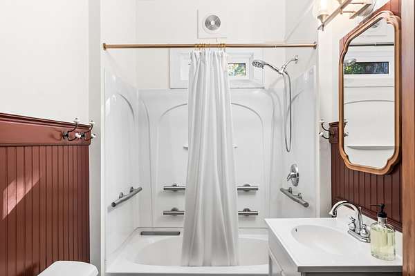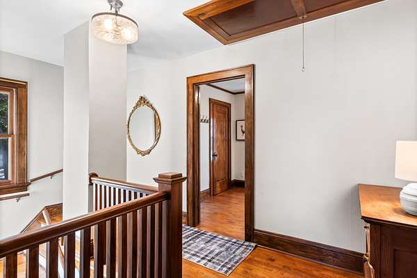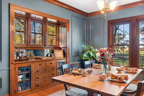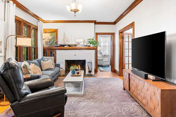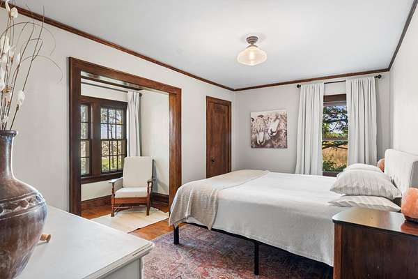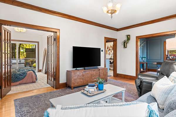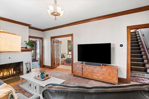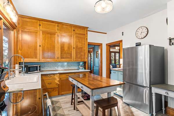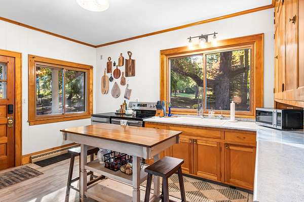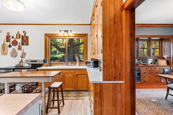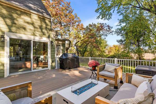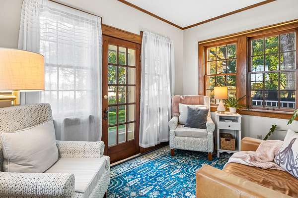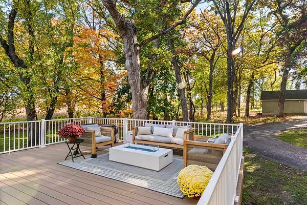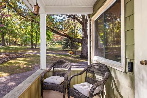Set on 3 acres surrounded by mature trees, this 5-bedroom, 1.5-bath Cape Cod offers the perfect blend of privacy and convenience. The main level features a kitchen, dining, 3 season room and living area PLUS a bedroom and brand-new 8' patio doors leading to a 20x20 composite deck overlooking the peaceful property. Upstairs are four bedrooms and a half bath. Enjoy evenings around the outdoor fire pit and take advantage of the detached garage for extra storage. Within walking distance to downtown Green Lake and access to the walking/biking trail, this home offers the best of both worlds--close enough to enjoy lake life without the waterfront price. Rent a boat slip nearby and be on the water in minutes!