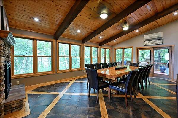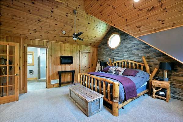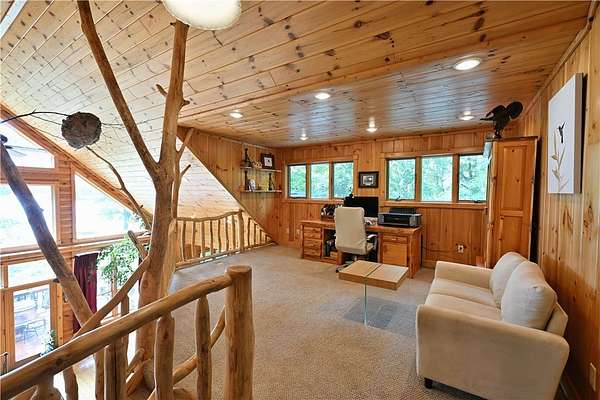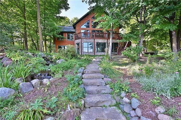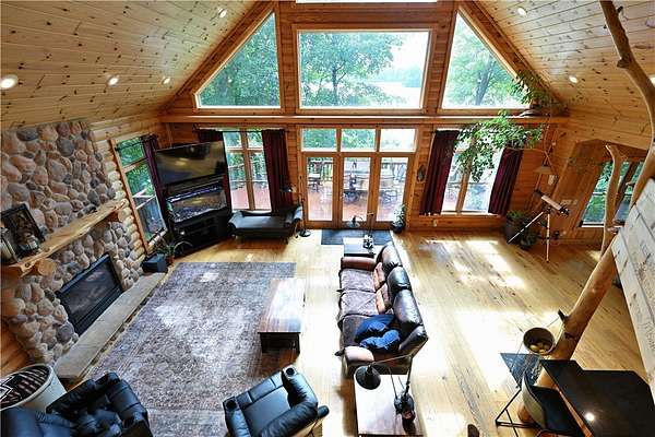 Phenomenal Northwoods chalet!! Discover your private Northwoods retreat with 380 ft of low elevation frontage on Long Lake, NW Wisconsin's top destination lake! This superbly designed 5-BR, 3-BA home spans over 4,900 sq ft and is perfectly tucked among mature trees for exceptional privacy. Inside, you'll find soaring wood ceilings, warm hardwood floors, 3 inviting fireplaces, and an open-concept layout ideal for gatherings. The custom built luxurious owner's suite features sweeping lake views, while the spacious lower level family room with theater seating, hot tub room, and sunroom provides the perfect setting for family and friends. Step outside to enjoy multiple deck spaces, a soothing waterfall, and a fire pit area. A heated, insulated 4-car garage ensures plenty of room for vehicles and toys. Long Lake offers 19 miles of excellent fishing, boating, scenic shoreline, sandbars, a full-service marina, & a boat-up golf course. Plus, the main ATV trail is just down the road.