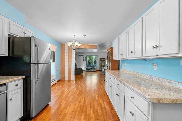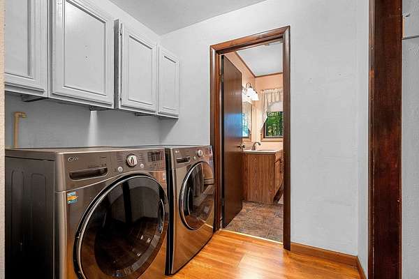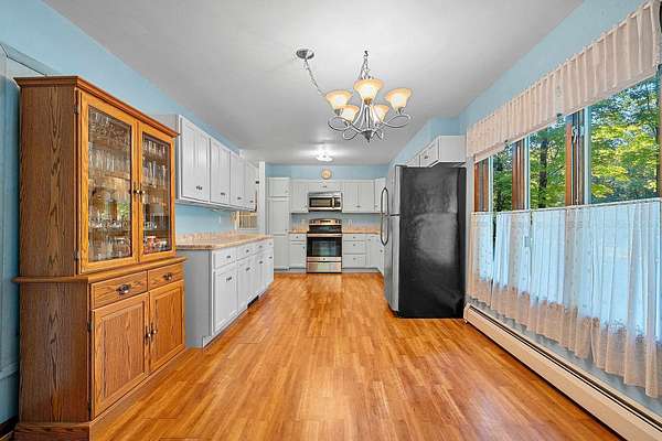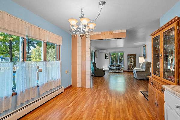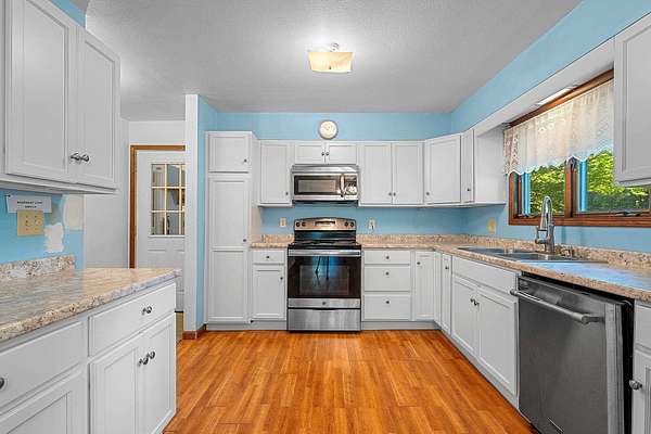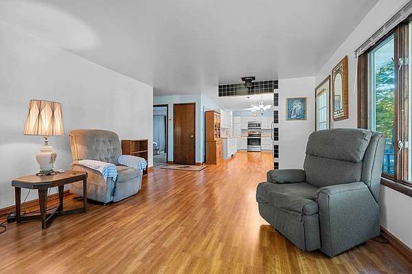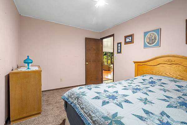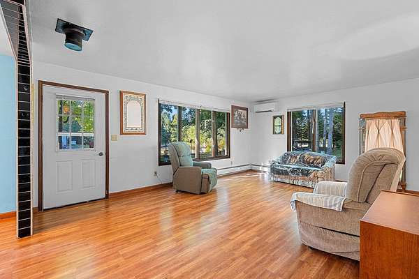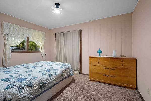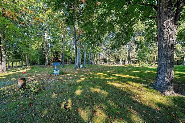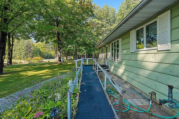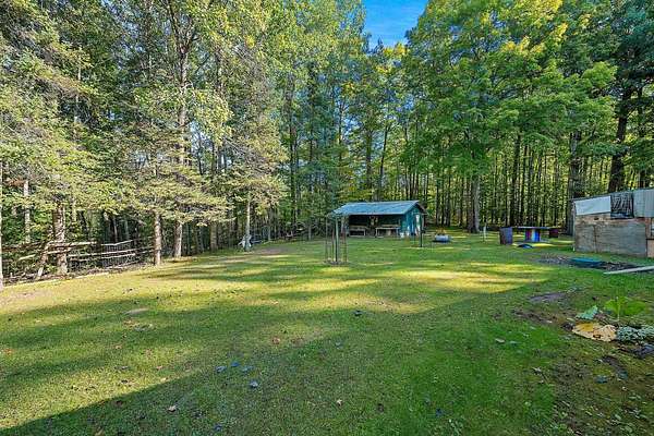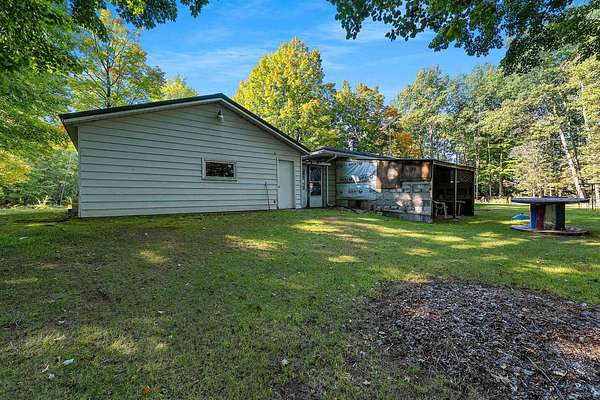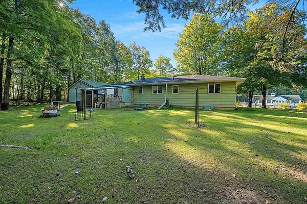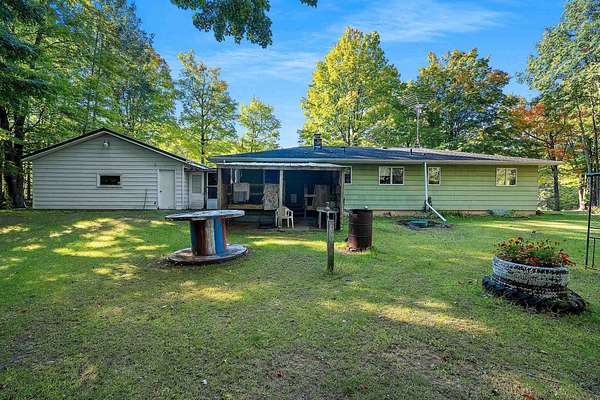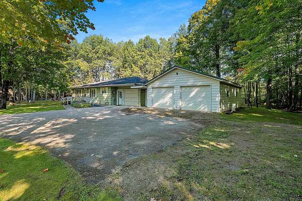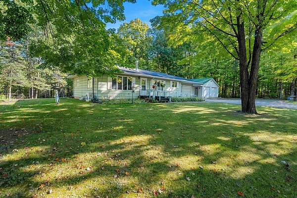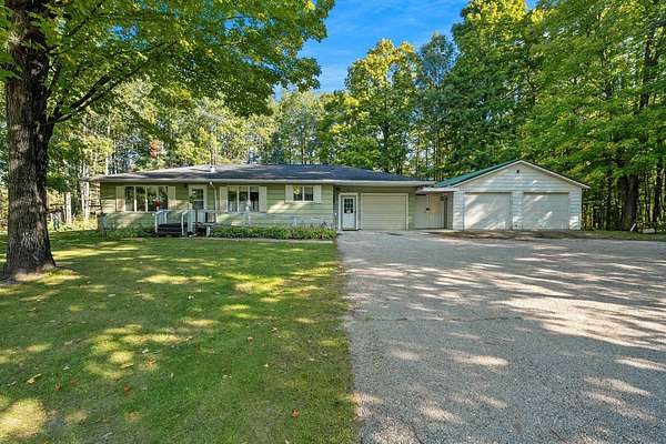 Welcome to this charming open-concept ranch nestled on nearly 5 wooded acres in the heart of the Northwoods. Enjoy the peace and privacy of this serene setting, where wildlife is your nearest neighbor. The updated, fully applianced kitchen flows into spacious living areas, perfect for entertaining. Home features 2 bedrooms, 2 full bathrooms, first floor laundry, and a full basement with potential for finishing and extra storage. Step outside onto the back deck to relax and enjoy the tranquil views. Property includes an attached 1-car garage, a detached 2-car garage--ideal for hobbies, storage, or outdoor gear--and a convenient storage shed for additional space. Gutter toppers have been installed for low-maintenance living. A perfect blend of comfort and nature!