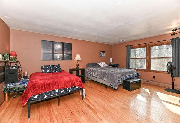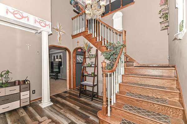 This elegant two-story home offers 3,300 sq ft of refined living set on 2.3 private wooded acres with a circle driveway. A dramatic two-story entry welcomes you, a spacious living room, formal dining room, and a warm den with natural fireplace. The inviting family room and expansive kitchen-featuring double ovens, dinette eating area, 4 bar stools at your counter and included appliances-are perfect for everyday living and entertaining. Upstairs, the primary suite boasts a private bath, dressing room, and walk-in closet, alongside three additional bedrooms with beautiful hardwood floors & spacious closets. Enjoy the convenience of first-floor laundry and a 2.5-car garage. A stunning two-story deck overlooks the serene wooded setting, offering ultimate privacy. A truly exceptional home!