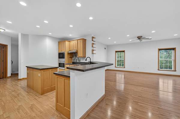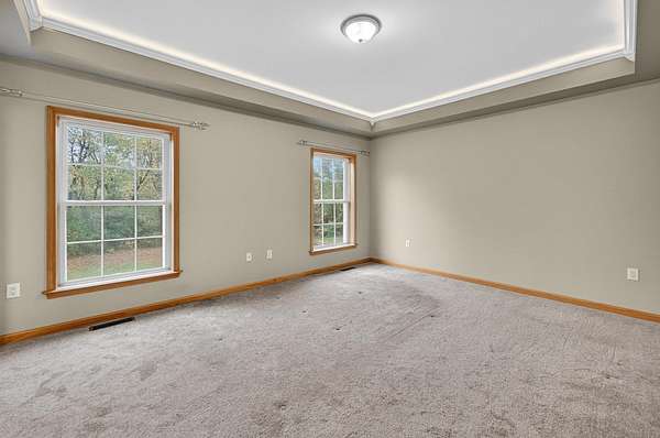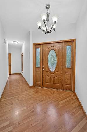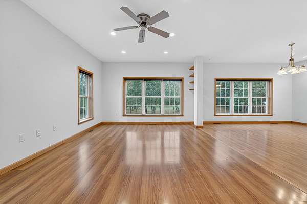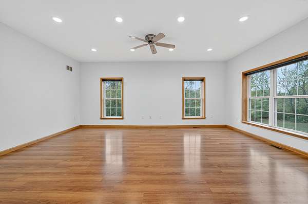 Discover country living at its best with this beautifully designed ranch home on 7.74 scenic acres. Enjoy stunning panoramic views from your private deck or relax in the primary suite featuring a walk-in closet and spa-style jetted tub. The open-concept layout is perfect for entertaining, while the unfinished walkout lower level offers room to expand with additional bedrooms or a bath. A new roof (2025) provides peace of mind, and the 3-car garage with 220V service is ideal for EV charging or hobby projects. With 4 bedrooms on one level, a dedicated laundry room, and high-speed TDS fiber, this home blends modern convenience with natural beauty - perfect for gardeners, outdoor lovers, or anyone seeking space and serenity.