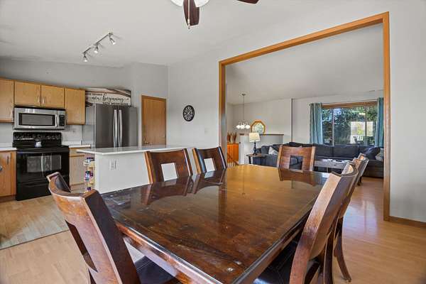 Set on 17.7 acres and directly bordering 190 acres of DNR land, this prime hunting property offers unmatched access to abundant wildlife and outdoor recreation. The bi-level home combines comfort with function and features recent updates including a new roof, siding, garage doors and furnace all in the last 5 years. The main level offers an open-concept living, dining, and kitchen area, plus two bedrooms and a full bath. The finished lower level includes a spacious rec room with durable LVP flooring and a cozy natural fireplace, along with a third bedroom and second full bath. Outside, enjoy established hunting stands and endless opportunities right out your back door--an ideal setup for serious hunters and outdoor enthusiasts alike.