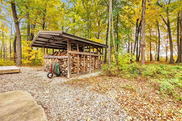 Gorgeous wooded setting for this quality built 2-story home in the Seymour School District. The home sits on 3.27 acres with a private pond. Features include: 3 bedrooms (potential for a 4th in the loft area), 2 full & 2 half baths, 1st floor primary suite with a fireplace, large great room with a floor to ceiling wood burning fireplace and large windows with amazing views. 1st floor office & laundry, spacious kitchen with a large granite island open to the dining/living room. Formal dining area. Heated attached garage with epoxy flooring, a separate heated workshop area, and steps to the basement plus a second detached 28 x 50 garage. Unfinished lower level with 8' ceilings. Newer patio overlooking the pond. Special Financing Incentives available on this property from SIRVA Mortgage.