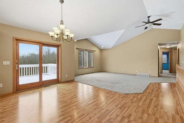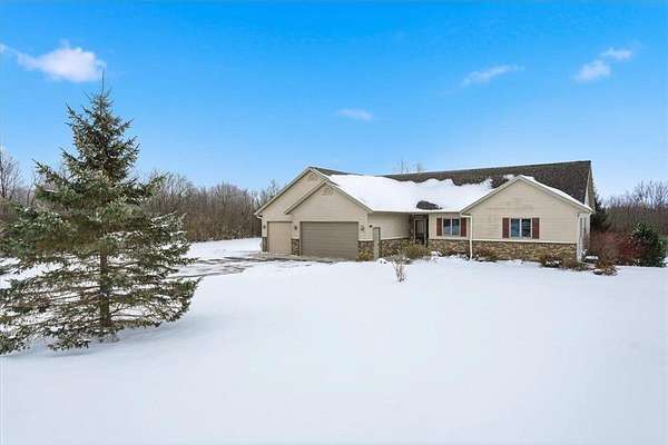 Est $2,588/moVery well cared for 4 bedroom, 3 bath rambler on 2+ acres. Main level features open kitchen/dining/living room area with vaulted ceiling. 3 bedrooms including primary bedroom with private bath and walk-in closet. Main floor laundry. Lower level has in-floor heat, large family room with walkout and gas fireplace, 4th bedroom and storage room. 3 car heated garage. Deck and patio. Quiet country setting with close to town convenience.. You won't be disappointed! Pre-listing home inspection available.