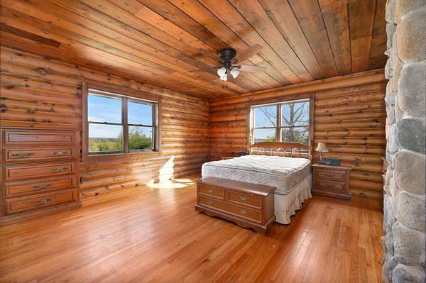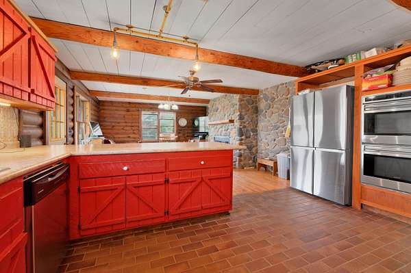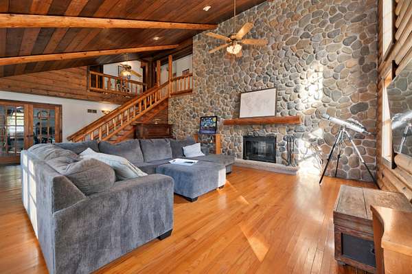 Est $4,420/moThis four-bedroom home is perched atop a hill on 9.45 acres, offering sweeping views to the north. The main level features a spacious kitchen and a dramatic two-sided, floor-to-ceiling stone fireplace. A full bath, bedroom, and office are conveniently located on the first floor.Equestrian enthusiasts will appreciate the impressive 34-stall horse barn, complete with individual water to each stall and a large indoor riding arena. The heated main aisle and overhead heat in the second aisle ensure year-round comfort.The property requires updating and is being sold in as-is condition, presenting a rare opportunity to create your ideal home and equestrian retreat.