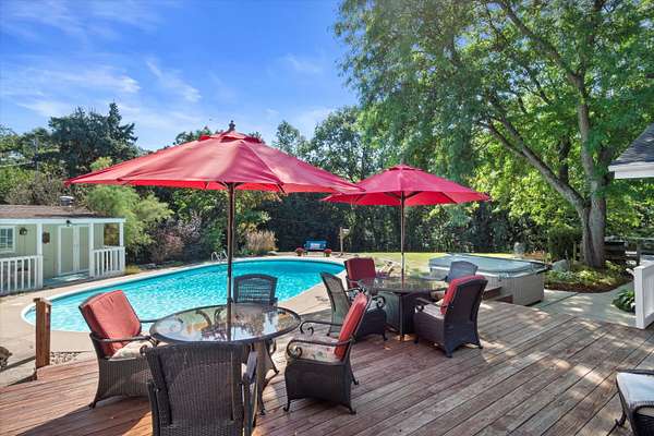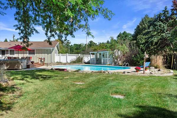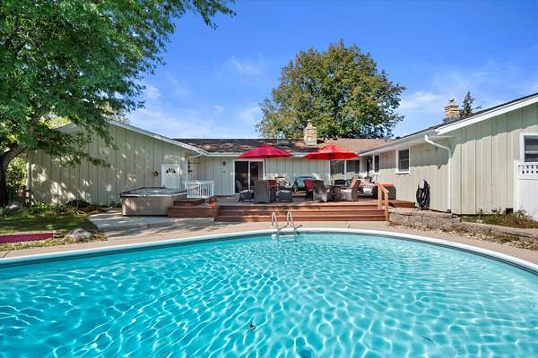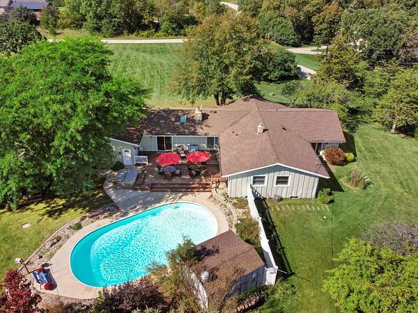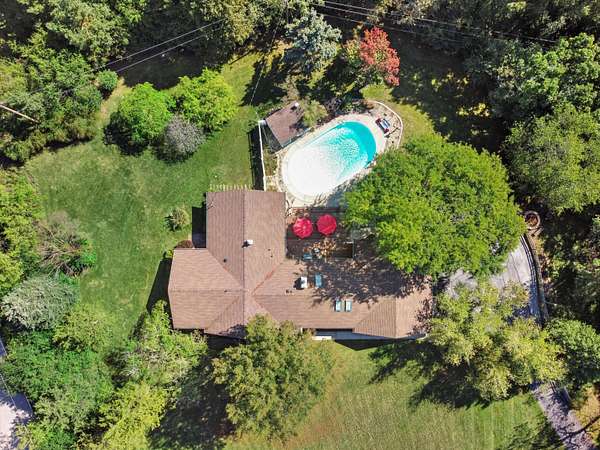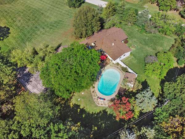 You'll love this beautifully updated split Ranch on a scenic 3.49-acre corner lot! With 2,548 sq ft on the main floor, this 4 Bedroom, 2.5 Bath home offers comfort, spacious living, and functionality. Enjoy a bright Living Room with large picture windows, cozy Family Room, formal Dining Room, flexible Den with Napoleon Natural Fireplace, main floor Laundry, and partially finished LL full of potential. The Chef's Kitchen features Custom Wood-Mode Maple Cabinetry, Granite Island(with generous prep space and abundant storage), Sub-Zero Refrigerator, Dual Ovens, and Maple Hardwood Floors. The private Owner's Suite includes an ensuite Bath and direct access to the Deck, Spa, and stunning In-ground Pool; perfect for relaxing or entertaining.A remarkable home and setting not to be missed!