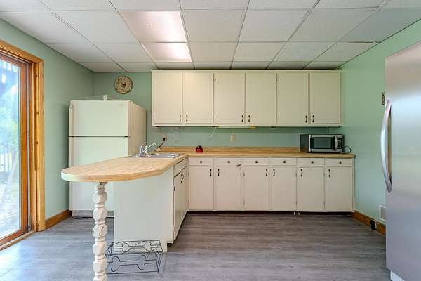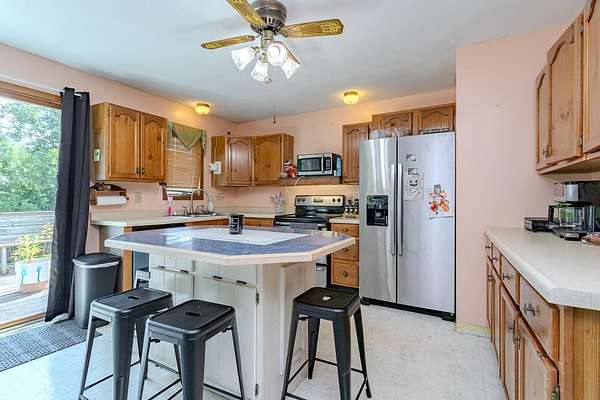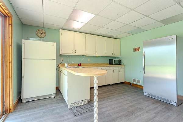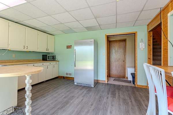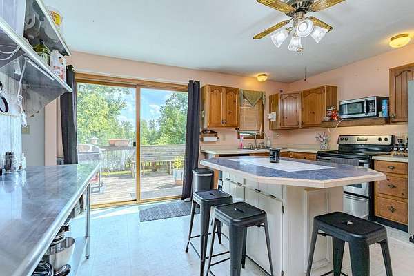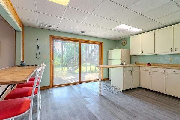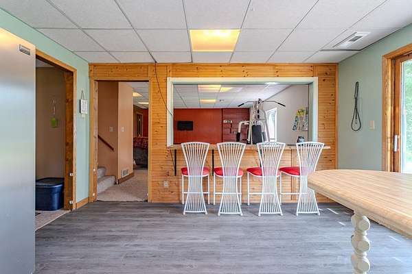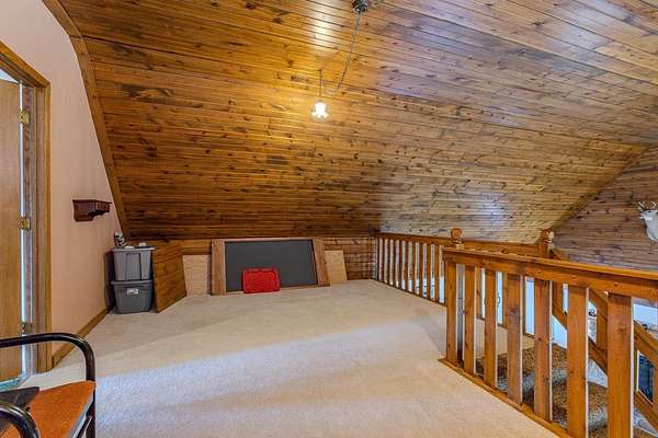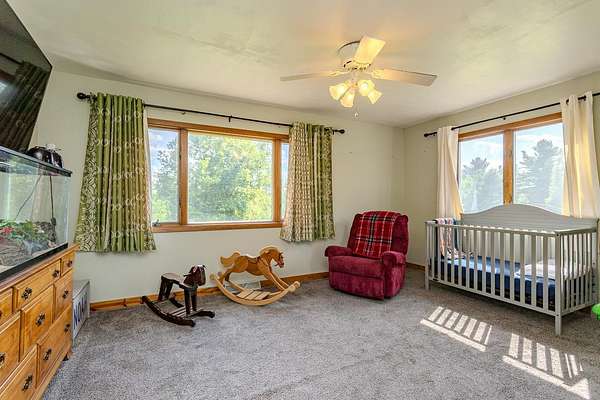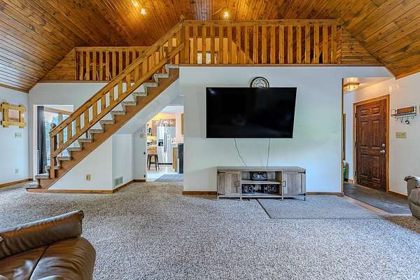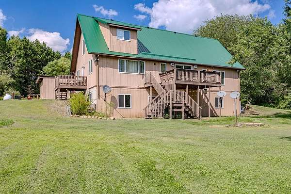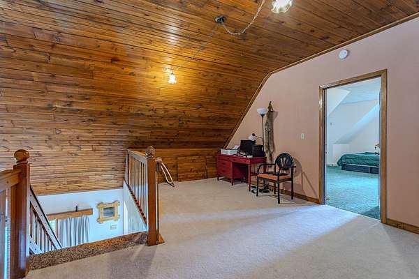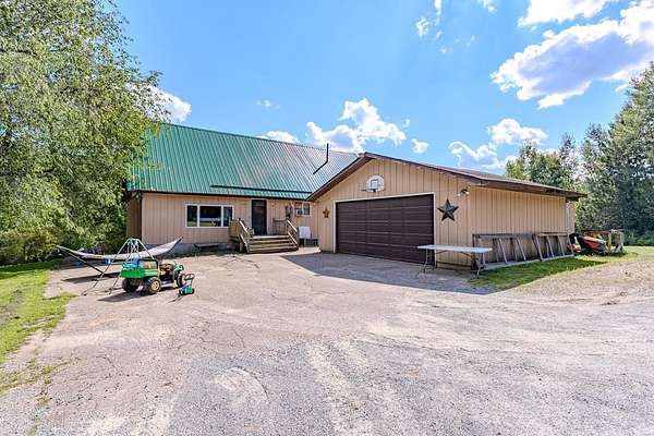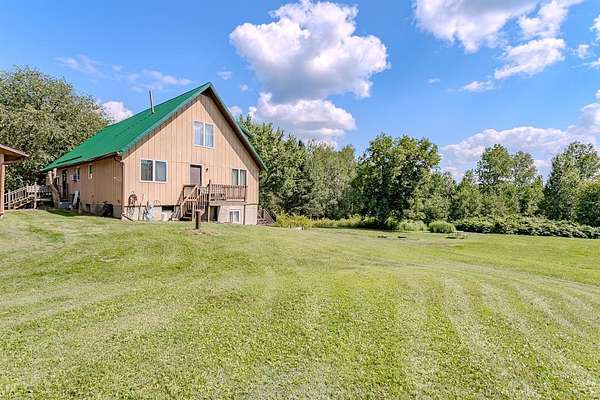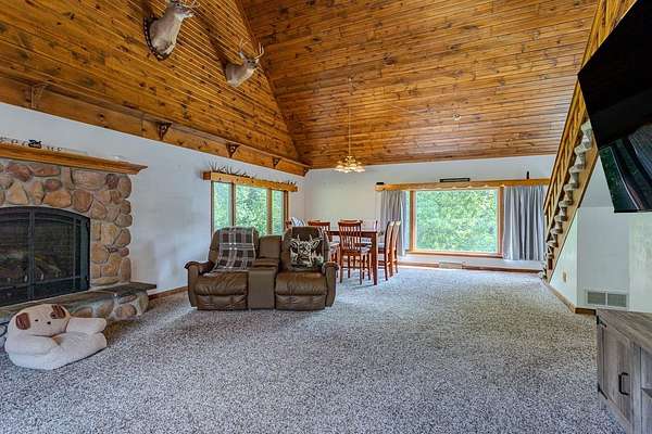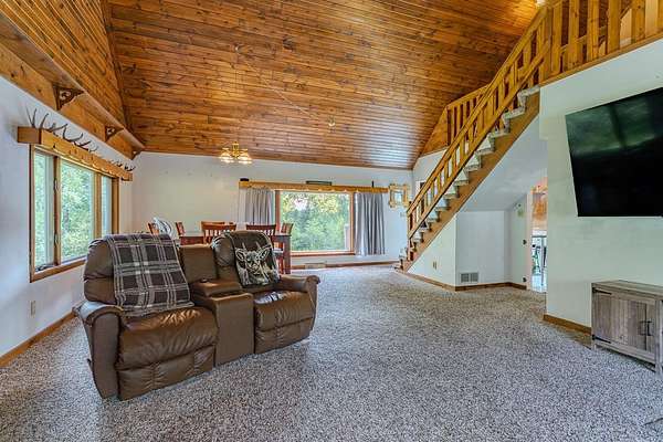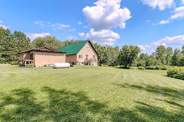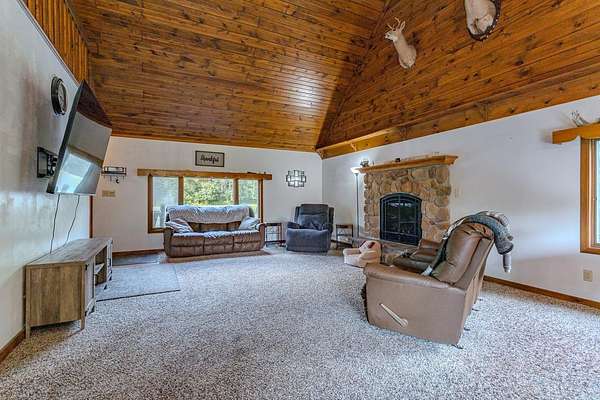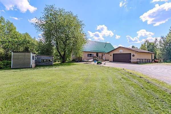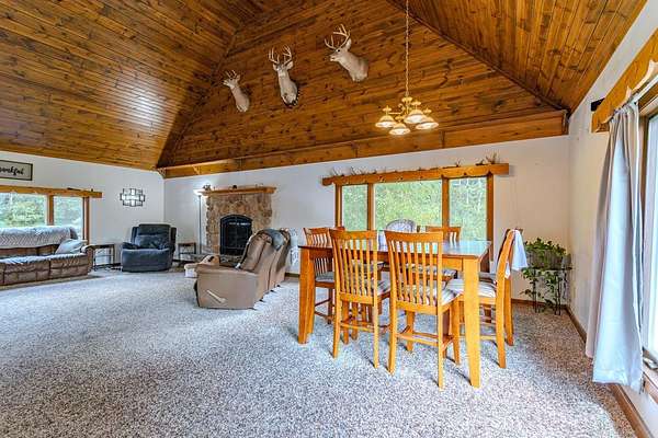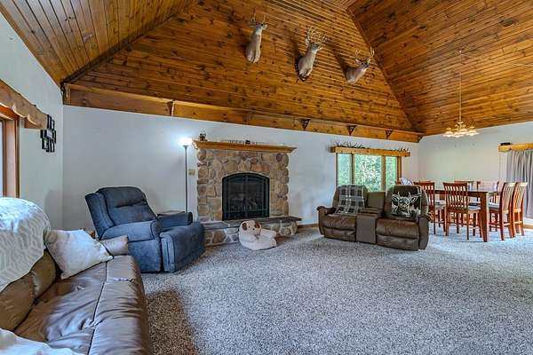 Escape to your own private retreat on 21.5 wooded acres with a scenic driveway leading to a spacious country home. Inside, the great room welcomes you with knotty pine vaulted ceilings and a cozy gas fireplace, flowing into a large dining area and kitchen with deck access. The main floor features 3 bedrooms, full bath, laundry, and an oversized pantry. Upstairs, enjoy a loft office and large bedroom with half bath. The walkout lower level offers a family room, bonus space, and kitchenette. Updates include central vac, newer well pump, fresh flooring and paint. Nearby ATV/snowmobile trails add to the lifestyle. Seller requests 60-day closing, contingent on finding a property.