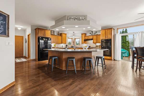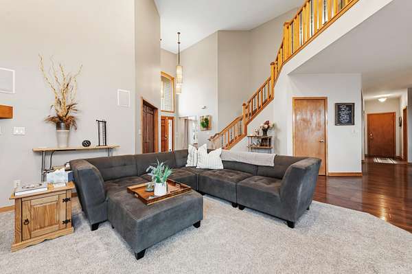 Est $4,280/moSpacious custom-built, original owner 4-bedroom, 2 full & 2 half bath home on 1.71 acres in Oconomowoc offers room to live, work, and entertain. The main level features a 2-story entry and living room with gas fireplace, dining room, office or 4th bedroom, butler's pantry, and walk-in pantry. Maple woodwork throughout includes cabinetry, solid doors, and staircase. The upper level offers a primary suite with newly tiled shower and walk-in closet, plus additional bedrooms with walk-in closets. Enjoy the composite deck (2023) overlooking the private lot. Exposed walk-out basement is framed for future finish. Updates include roof (2022), HVAC (2023), sump pump (2026), and new carpet. Rare 5-car garage.