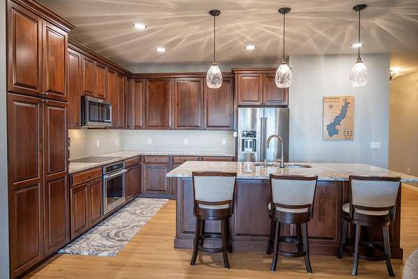 Waterfront Living on Petenwell Lake, Move-In Ready! Skip the building process and step right into this nearly new waterfront home with 162 feet of frontage on beautiful Petenwell Lake. Designed for both comfort and entertaining, the home features a stunning great room with vaulted ceilings and a fireplace, flowing seamlessly into the open kitchen with a large granite island, perfect for large gatherings. This home offers 3 bedrooms and 2 baths, along with a full basement already insulated and divided, ready for your finishing touches, ideal for a future rec room, additional bedroom, and bath. Additional highlights include a 2.5-car tandem garage with space for up to 3 vehicles, a fenced yard, and low-maintenance Diamond Kote siding for easy living. As an added bonus, the seller is including partial furnishings, making your move even easier. Enjoy lake life right away, this is an opportunity you won’t want to miss!