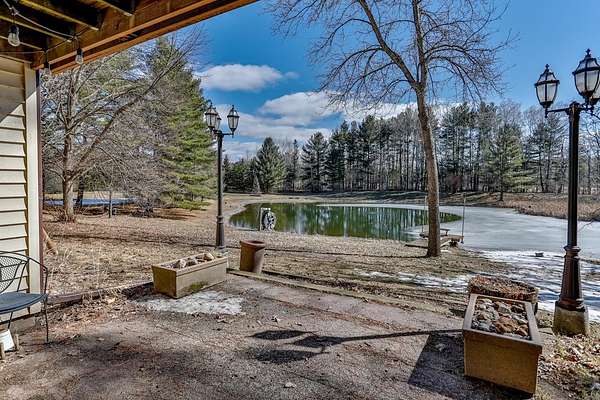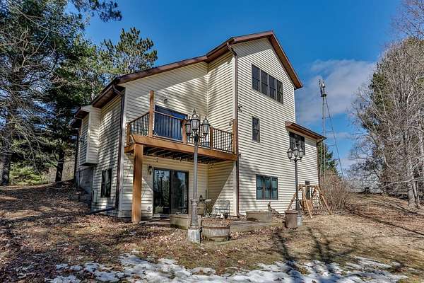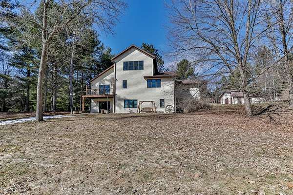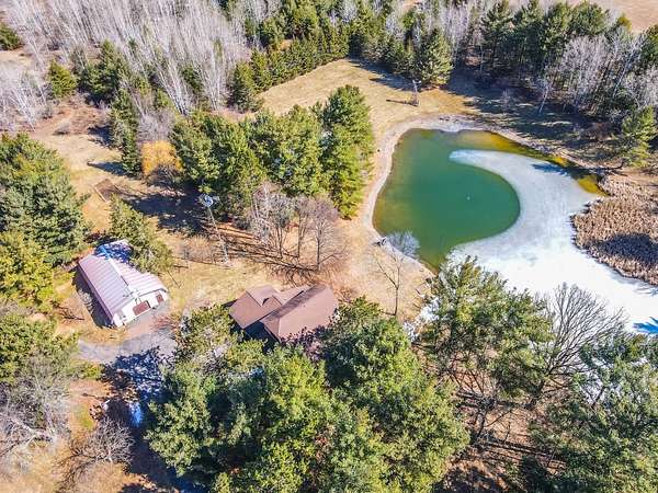 Stunning 25.73-acre property located in the Town of Pine River, just south of Merrill. This impressive estate features a 2,500 sq ft home with 3 bedrooms, 3 bathrooms, a 2-car attached garage, and a walkout basement. The property also includes 2 outbuildings (30x48 and 26x48), both with concrete floors and electricity. In the outbuilding closest to the home, the front half is an insulated workshop, and the back half contains an additional insulated room which includes a stove for heat offering a great space for entertaining and housing guests. Enjoy a scenic 0.85-acre pond complete with an included aerator, dock, and small boat. Ideal for a hobby farm, the land includes a horse pasture with electric fencing and established trails throughout. Mix of wooded areas and garden areas, including a small patch of planted Christmas trees, 1 mature apple tree and 4 young apple trees. Abundant wildlife adds to the peaceful, private setting. Recent updates include a water heater (2024), furnace and central A/C (2020), gutters (2022), windows and patio doors (2023), and roof shingles (2015, per the previous owner). High-speed internet is available through Frontier, per the sellers.