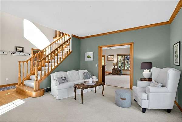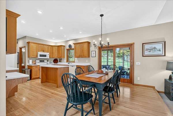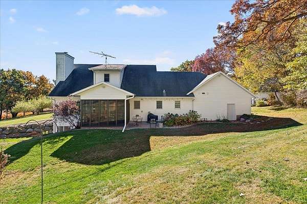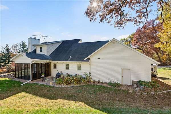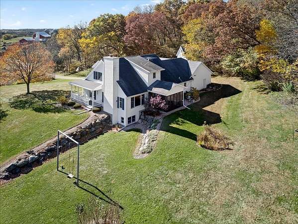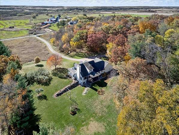 This beautiful country estate sits on 8.6 acres of natural prairie & pristine woodlands & features a gorgeous 2-story home that has been lovingly cared for & tastefully updated. Enjoy a morning coffee on your wrap around front porch and a peaceful evening in your 3-season sun room. Main floor includes the primary suite, two separate living spaces, & a laundry/mud room. Plenty of space upstairs and downstairs for sleeping, working, and recreating. Additional storage and work space in the attached oversized 2-car garage and the 950-sqft heated outbuilding (with second floor storage space). Must see this home to fully appreciate the lifestyle that comes with it. Click on the VIRTUAL TOUR tab under the photo to see the aerial video tour! See the aerial map in the attached docs.