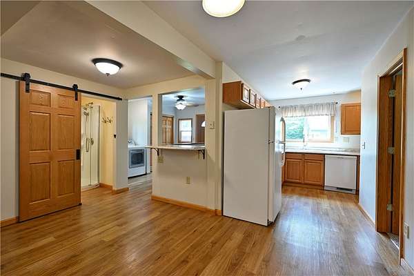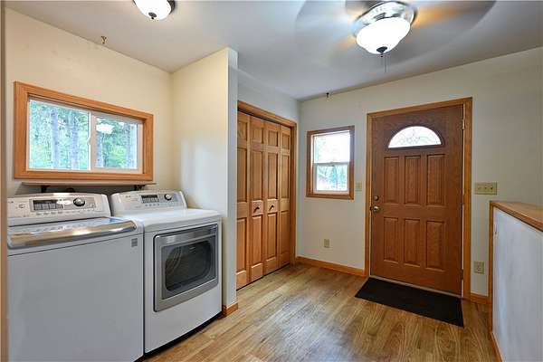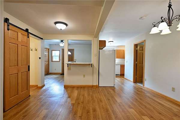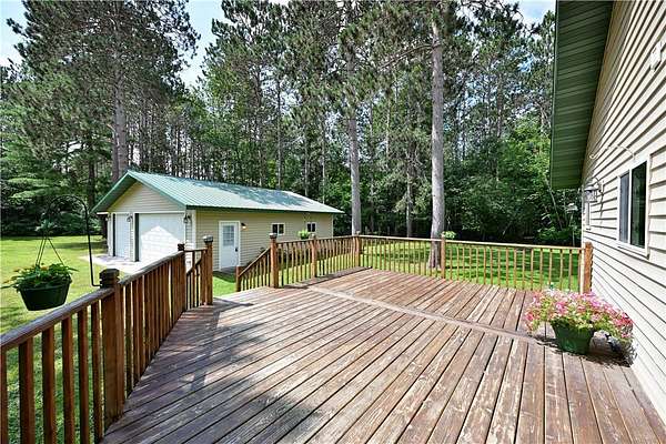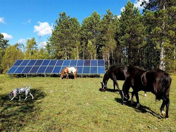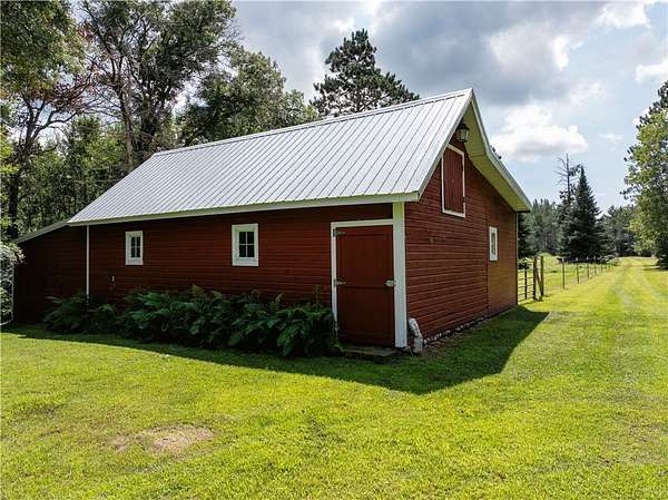 A premier hobby farm and equestrian estate set on 35 beautiful acres, perfectly situated between Spooner, Hayward, Minong, and Trego with direct access off Hwy 63. This 3-bedroom, 2-bath home offers a harmonious blend of rural charm and modern sustainability, featuring a dual solar system connected to Xcel Energy to minimize energy costs. The land is thoughtfully laid out for hobby farm use, with fenced horse pastures, riding arenas, scenic trails, and space for additional animals or gardens. A fully insulated 2-car detached garage adds versatility, while a well-maintained barn provides excellent shelter and functionality for livestock. Whether you're an avid equestrian, aspiring homesteader, or simply seeking a peaceful, self-sustaining lifestyle, this one-of-a-kind property offers endless possibilities in a serene Northwoods setting. Also new carpet has been installed in all the bedrooms for the fresh new home feeling.