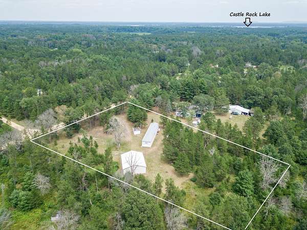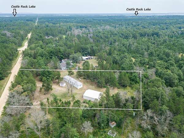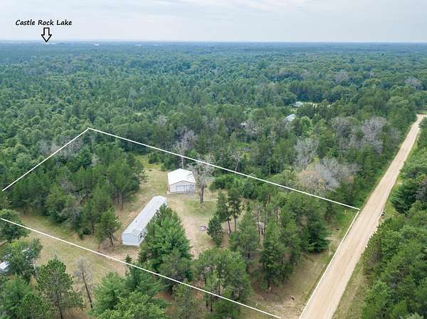 Location, Location, Location! As the crow flies- less than 2 miles from public boat launch on Castle Rock Lake and small sandy beach area. This 1995 single wide manufactured home features 1280 sq ft of living space, 3 bedrooms, 2 full bath and central A/C unit. Split bedroom/bathroom floor plan wonderful for privacy. The property includes 32x40 pole shed with concrete and electric. Plenty of room to store those recreational toys. On private road with optional annual maintenance fee for grading and snow plowing. The lot is partially wooded-1.51 acres with 201 feet of road frontage. Fiber Internet & Natural Gas available at the road. On ATV route and close to snowmobile trail. It also could be a good short term rental property. OLD STORAGE SHED WILL BE REMOVED PRIOR TO CLOSING