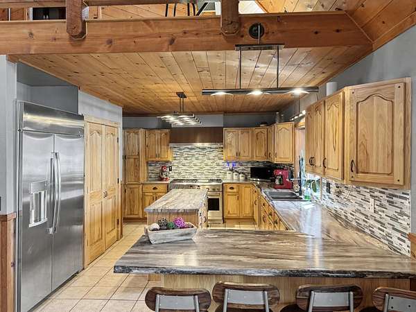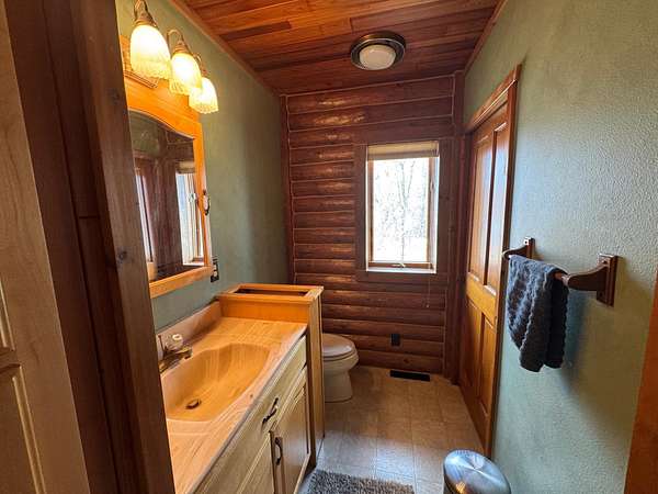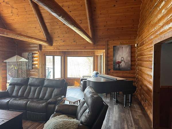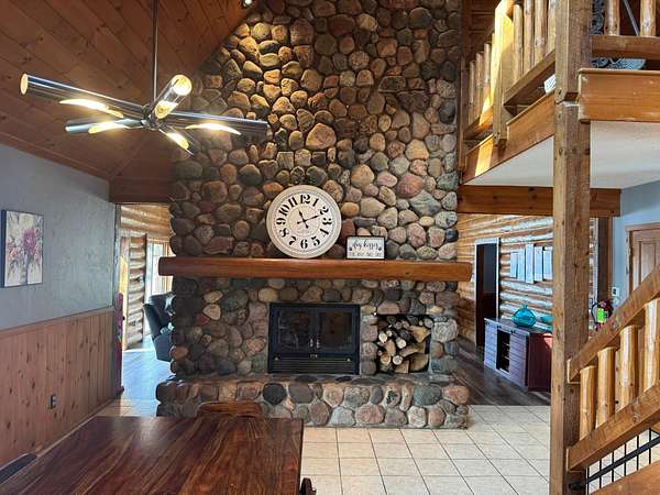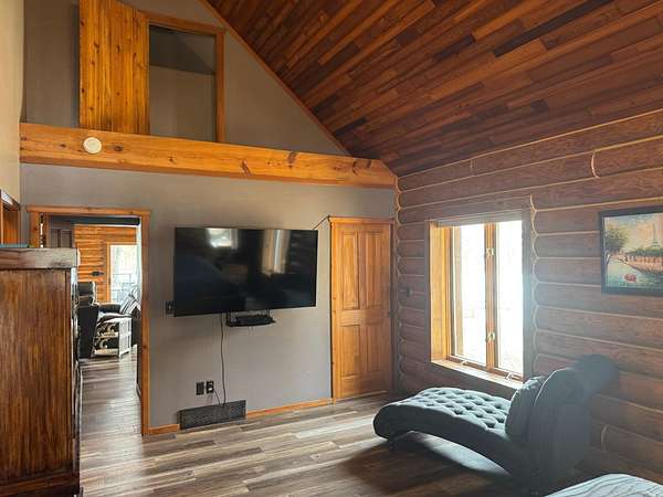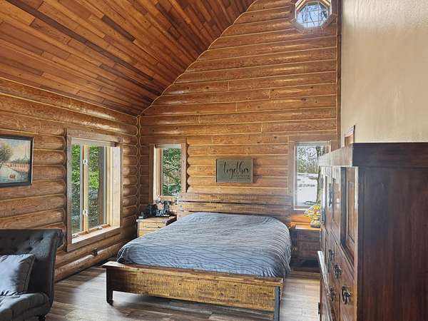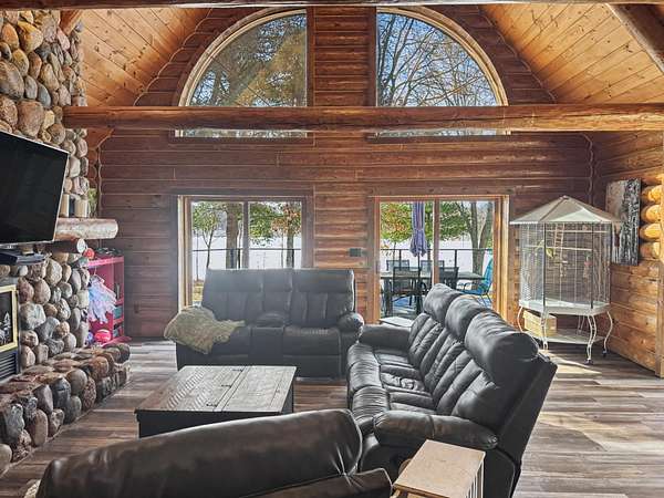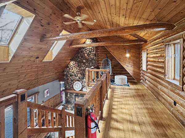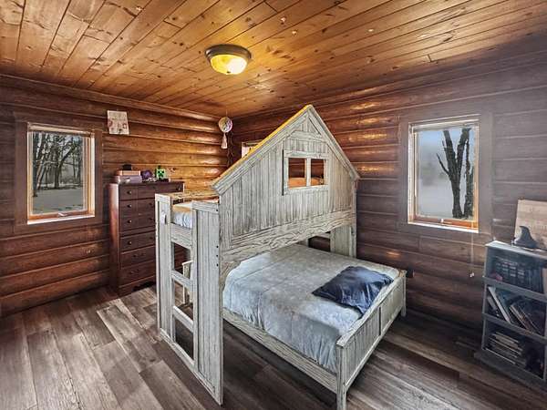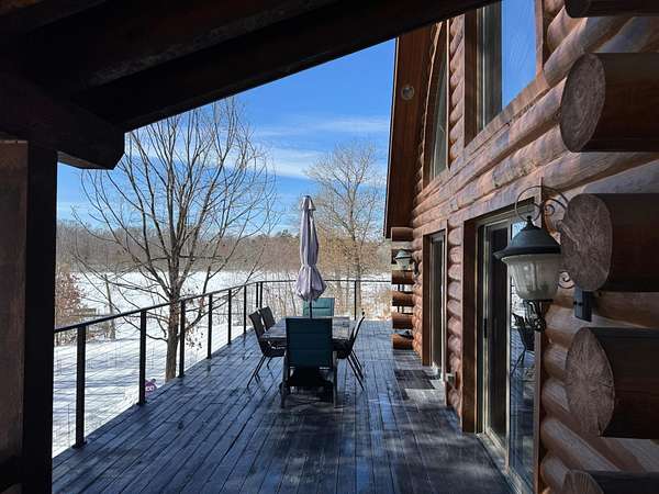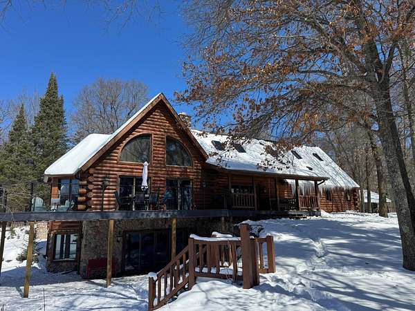 Log home living at its finest! Check out this beautiful home located on 38 acres with 1200 ft of frontage on Mequithy Lake. The home features vaulted ceilings, real stone fireplaces, big kitchen with updated appliances. Nice spacious living room, Master Suite, large laundry room and attached 2 car garage. Upstairs has 2 bedrooms, storage areas and loft. The walkout basement has a huge family room, bar area, bathroom, and extra rooms for any hobby you may want to take up. Outside features landscaping, a big pole building sized for a motor home and all the toys you can store, even an overhang to cover the trailers. The second building is 28 X 30 heated shop with overhang. Big garden area with a well and power installed, also many trails throughout the property. Start living your best country life today!