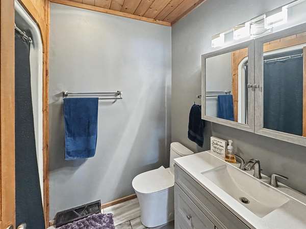 - Bath In Primary Bedroom, Cathedral Ceilings, Ceiling Fans, Central Vacuum, Dry Bar, High Ceilings, Main Level Primary, Vaulted Ceilings, Walk In Closets