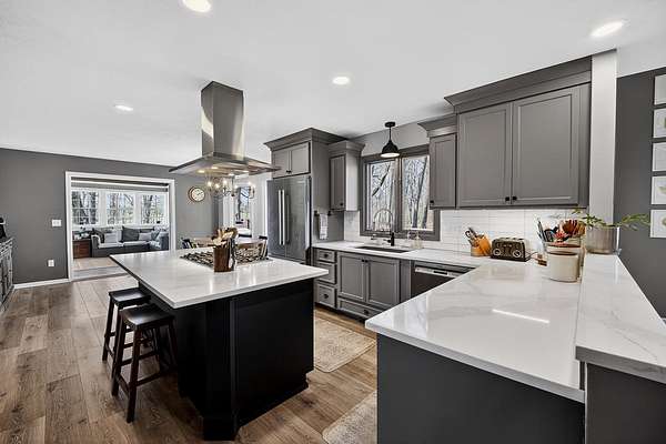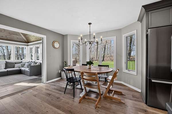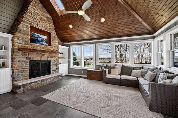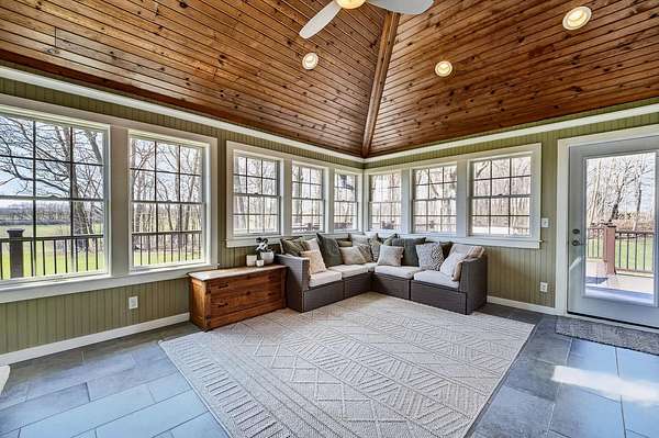 Showings begin 4/16! Just north of Monroe, set on 6.62 acres with sweeping countryside views, this exceptional estate offers a rare blend of space, design, & setting. The main level fts a dramatic living room with soaring ceilings and built-ins, a chef’s kitchen with sunlit dining area, powder room, main floor laundry, flex/dining room, and a private primary suite with a spa-like bath. The beautiful sunroom with fireplace provides the perfect place to unwind and take in the views. Upstairs offers three bedrooms, a full bath, and a loft overlooking below. The newly refinished lower level adds additional living space, another bath, and an office with built-ins. An expansive deck, three-car garage, and outbuilding for your toys and hobbies complete this impressive property. Beautifully designed landscaping and a welcoming front patio create a striking first impression and offer yet another place to take in the stunning views. The acreage blends wooded privacy with an open, park-like yard.
