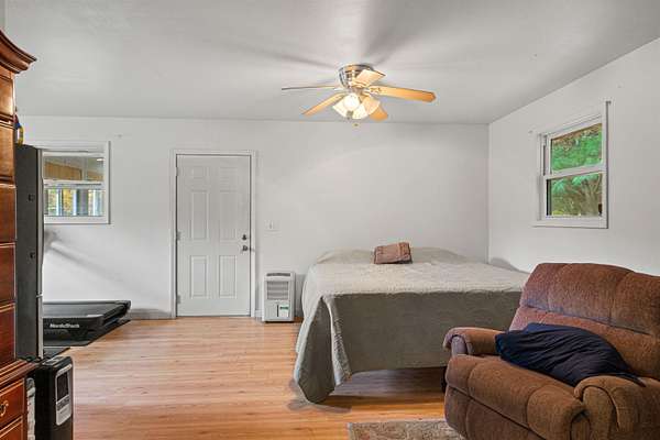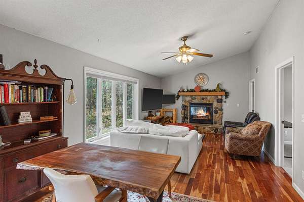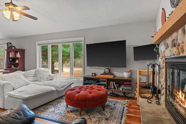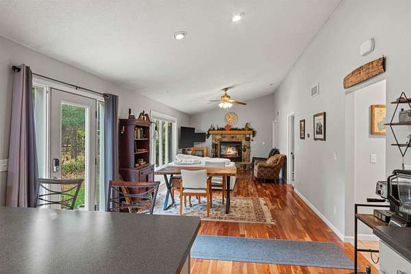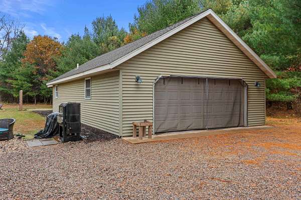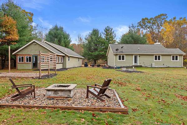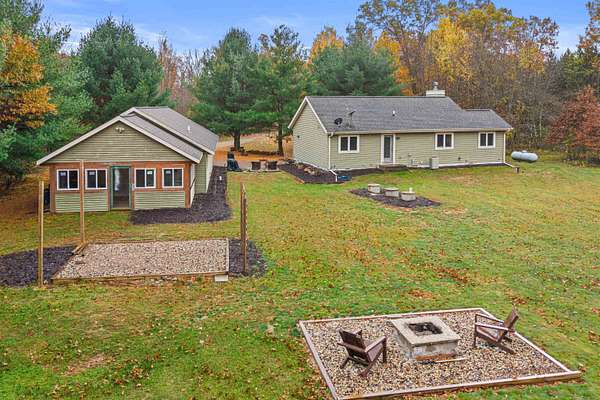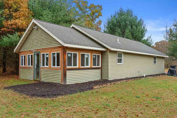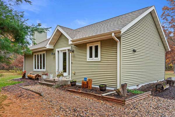 Secluded wooded acreage offers privacy and nature with a boat slip and pier just across the street to Lake Petenwell! Enjoy main floor living with vaulted ceilings, a cozy fireplace, and screened-in porch perfect for peaceful mornings. Includes a full apartment/in-law suite! Unwind by the outdoor firepit after a day of adventure. Property is a quick drive to Sand Valley Golf Resort, Northern Bay, and the interstate. Explore nearby 3,000 acre wildlife refuge, ATV and snowmobile trails. Ideal year round getaway or full-time home with endless outdoor recreation and lake life at your doorstep!