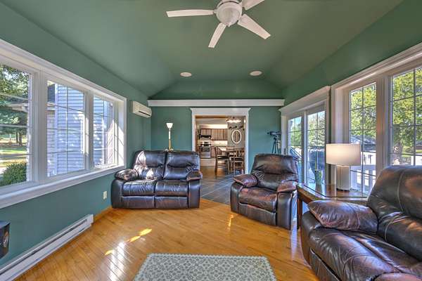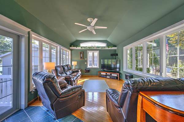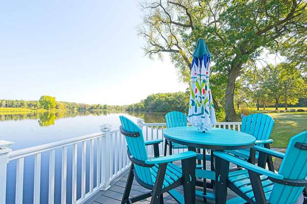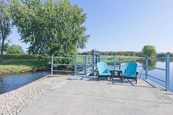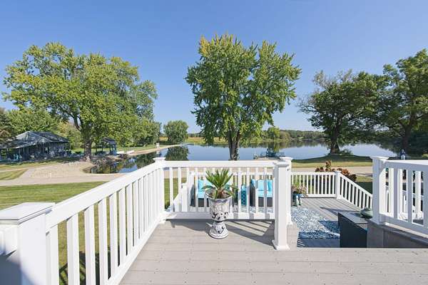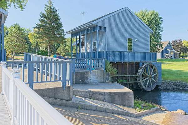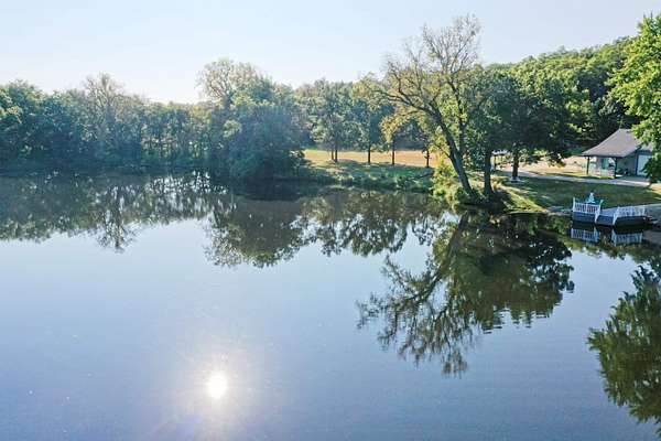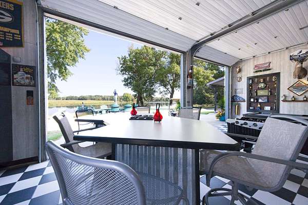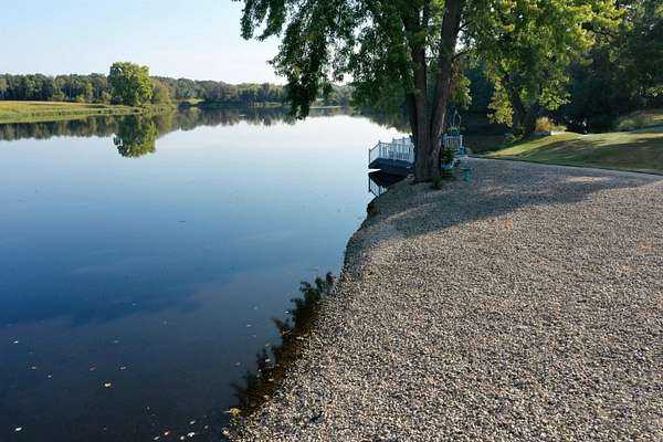 Discover this rare gem on 5.38 acres w/ scenic views of Duck Creek, one-of-a-kind property blends peaceful waterfront living w/ functionality & entertainment space! At the heart of the property is a converted airplane hangar, offering versatile multi-use space, ideal for storing boats & toys, 2 entertainment areas w/ OH doors that seamlessly connect indoor gatherings w/ the great outdoors. An additional 28x64 garage w/ 4 OH doors offers ample room for storage or hobbies. Main home offers relaxing sunroom, kitchen, and primary suite that all overlook tranquil waters. Spacious LL ft. bdrms, den, and living room. Watch eagles soar, turtles sunbathe, & fish jump, all from your backyard. Bonus: Includes an income-producing dam. Don't miss this exceptional opportunity!