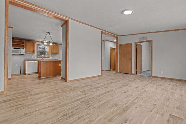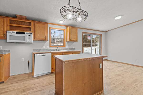 Located minutes from Princeton and across from the Fox river sits this turn key home on over 2 acres of land. 2 acres includes a rolling hill allowing for a walk out basement awaiting your finishing touches. New flooring throughout. Spacious living room open to your large kitchen and dining space. Kitchen with a center island providing tons of storage and prep space. Primary suite with en suite bathroom with shower & jetted tub, walk in closet, and additional den/office space (perfect for a small nursery!). 2 more bedrooms and 1st floor laundry complete the 1st level. 2 car attached garage with direct access to the home. Backyard shed & deck completes this home! New roof! Survey, shared driveway, & shared well agreements being recorded. Parcel ID/Taxes for both W5488 & W5492 Bend Rd.