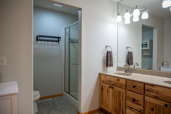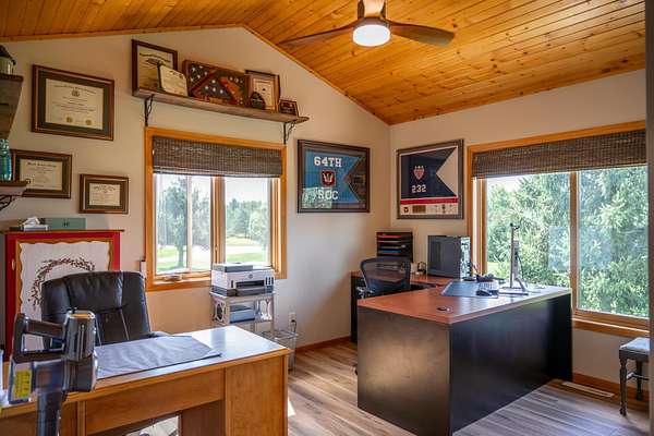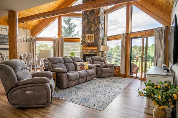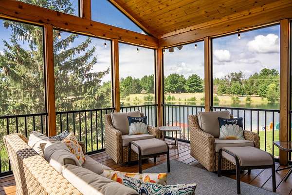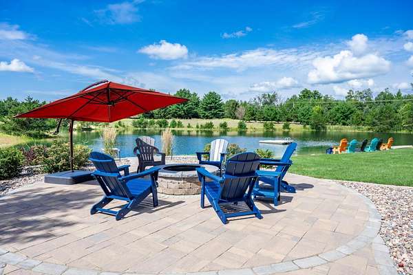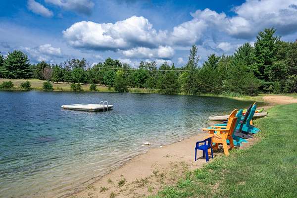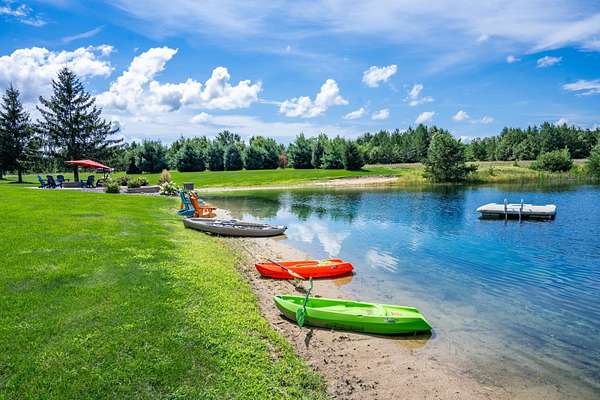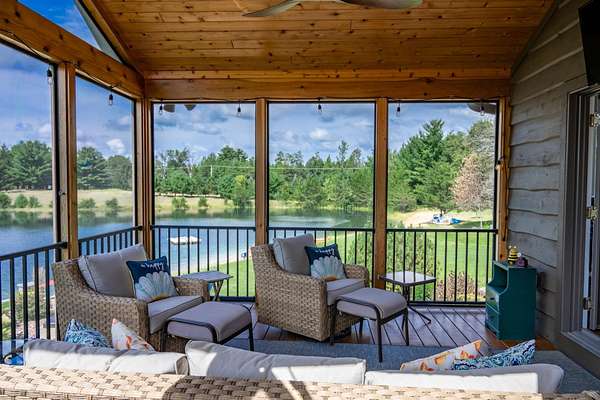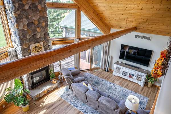 Executive Home in a Private Park-Like Paradise! This stunning property offers private waterfrontage with a raft for swimming, fishing, or launching your kayak--plus year-round fun with ice skating in winter. Inside, you'll find 4 bedrooms and 3 baths, including a spacious main-level primary suite. The vaulted great room, featuring a stone-to-ceiling fireplace, creates a warm and inviting space, while the loft is ideal for an office or reading nook. A finished walkout lower level provides rec rooms for all to enjoy. Outdoor living shines with a large deck and screened porch overlooking beautifully landscaped grounds, complete with electric fencing for pets. Thoughtfully updated inside and out, this move-in-ready home feels like your own retreat, yet is just steps from Castle Rock Lake.