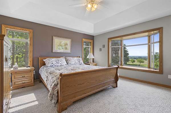 A well designed beautiful custom built home, nestled back on a 2.59 acre picturesque landscape, lined with trees for privacy, views of Shawano Lake and gorgeous sunsets that you'll find absolutely amazing! The moment you step inside you know this home has been meticulously cared for. With 4 generously sized bedrooms, 3 large full baths, a half bath, a very welcoming great room with breathtaking wall of windows and inviting fireplace, walk-out family room with pellet stove, a huge bonus room, oversized attached garage, workshop space in lower level with garage access, 2 large decks to enjoy views of the Lake, all the birds, and wildlife provide unlimited space for every desire. You'll find this home has something for everyone, the very best of country living, with city amenities close by!