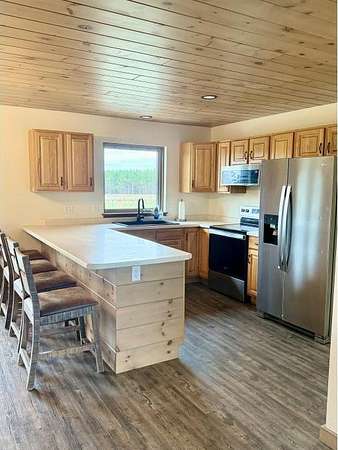 Est $2,854/moMove in ready! Hard to find country property close to town! Enjoy 28 acres of beautiful grassy & rolling hills in the town of Polar. Excellent location; close to ATV, snowmobile & horse trails. 2 stall garage with tons of storage space. New in 2024: roof, siding, windows, garage doors, interior doors, insulation, wood flooring, tongue & grove ceilings, air conditioner & much more! Small barn w/ attached shelter included. New deck & patio.