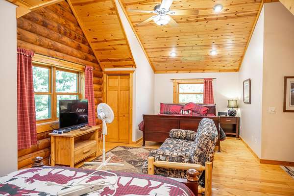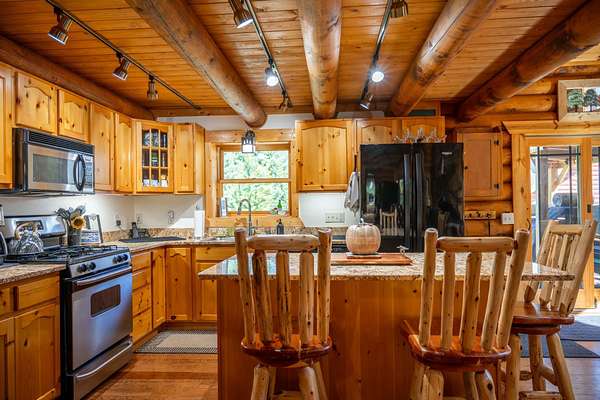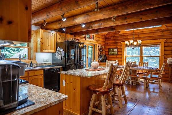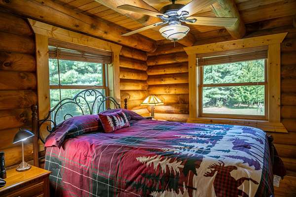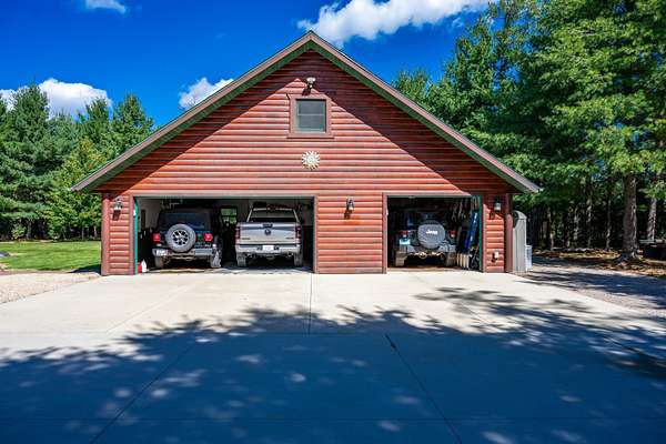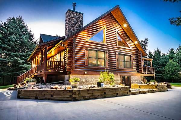 A Meadow Valley Log home with a Hallmark-like entrance with over 3 acres of wooded lots for privacy! This gorgeous home sits off the road and is surrounded by trees and offers three bedrooms and three full bathrooms as well. Great room welcomes you with high ceilings with loft area, a Valcourt wood burning stove insert fireplace that can heat the entire home if necessary. There is a heated 3 stall garage with a finished room above, that is heated and cooled, a great spot for a game room or workout area. Equipped with newer appliances, granite countertops and 8' ceilings in the basement with a bonus room area being used for an extra sleeping area for a possible 4th bedroom. Minutes to the Local attractions.