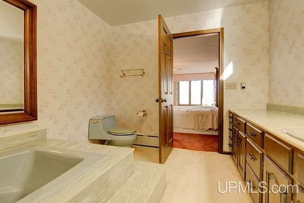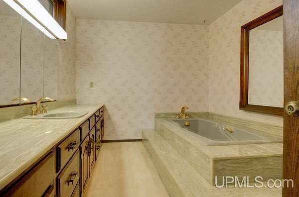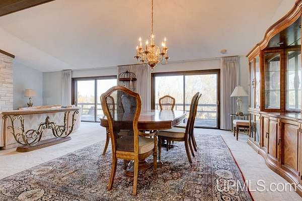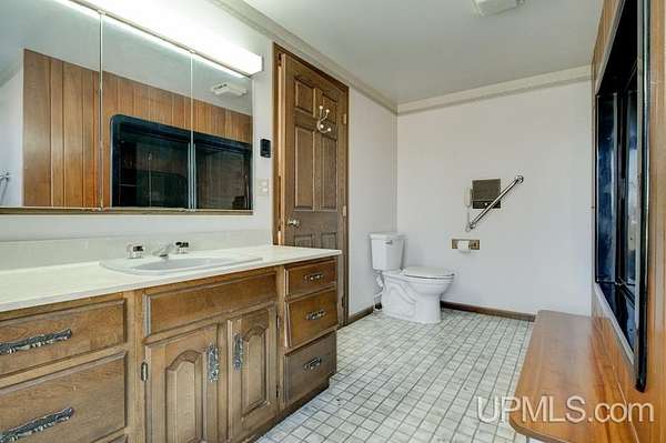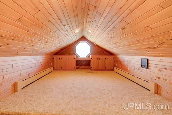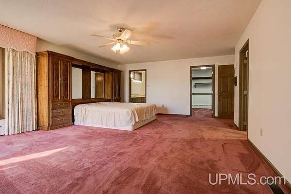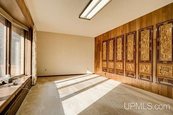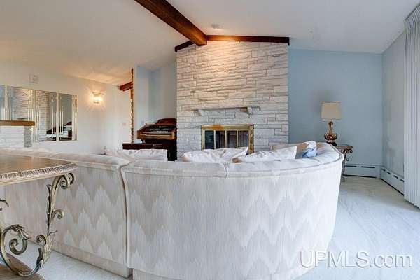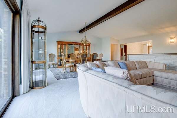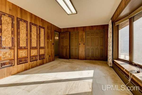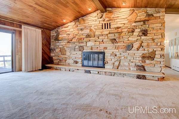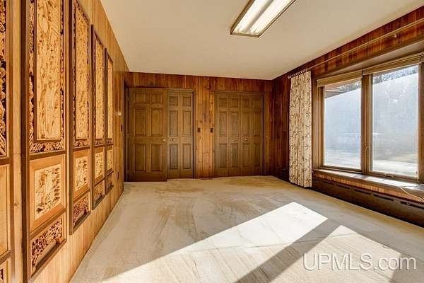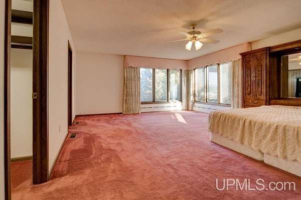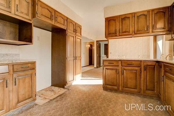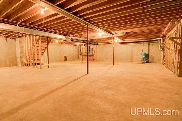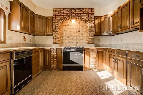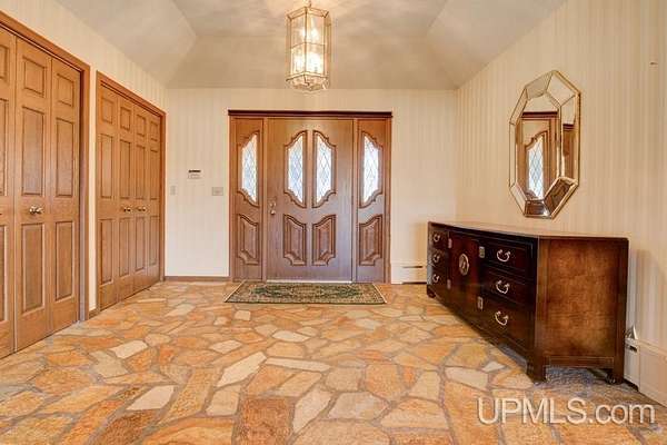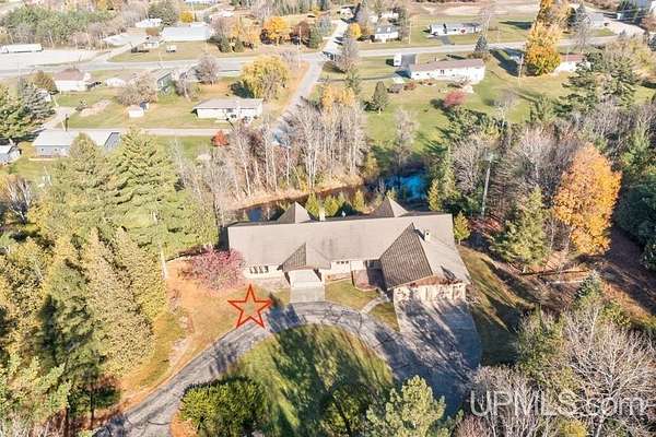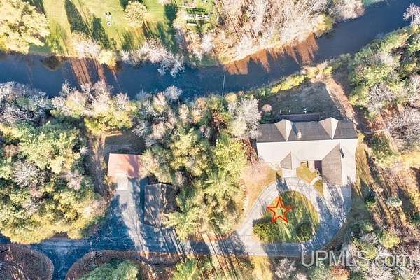 Est $3,915/moSpalding,MI waterfront sweeping brick ranch home with acreage.This 3 bedroom, 3.5 bathroom home has over 3,800 sqft above grade. Custom cabinetry throughout. Granite tops. Dual fireplace. Massive Room sizes. Private road with your own bridge access lined with a mixture of trees, leading to an architectural gem with a slate roof. Tucked away in serene surroundings, loaded with features: expansive primary suite, dual bathroom soaking tub, steam bath, multiple walk-in closets, and balcony views. Full basement with detached and attached garages. Built to wow and last for generations. This listing is a must see!